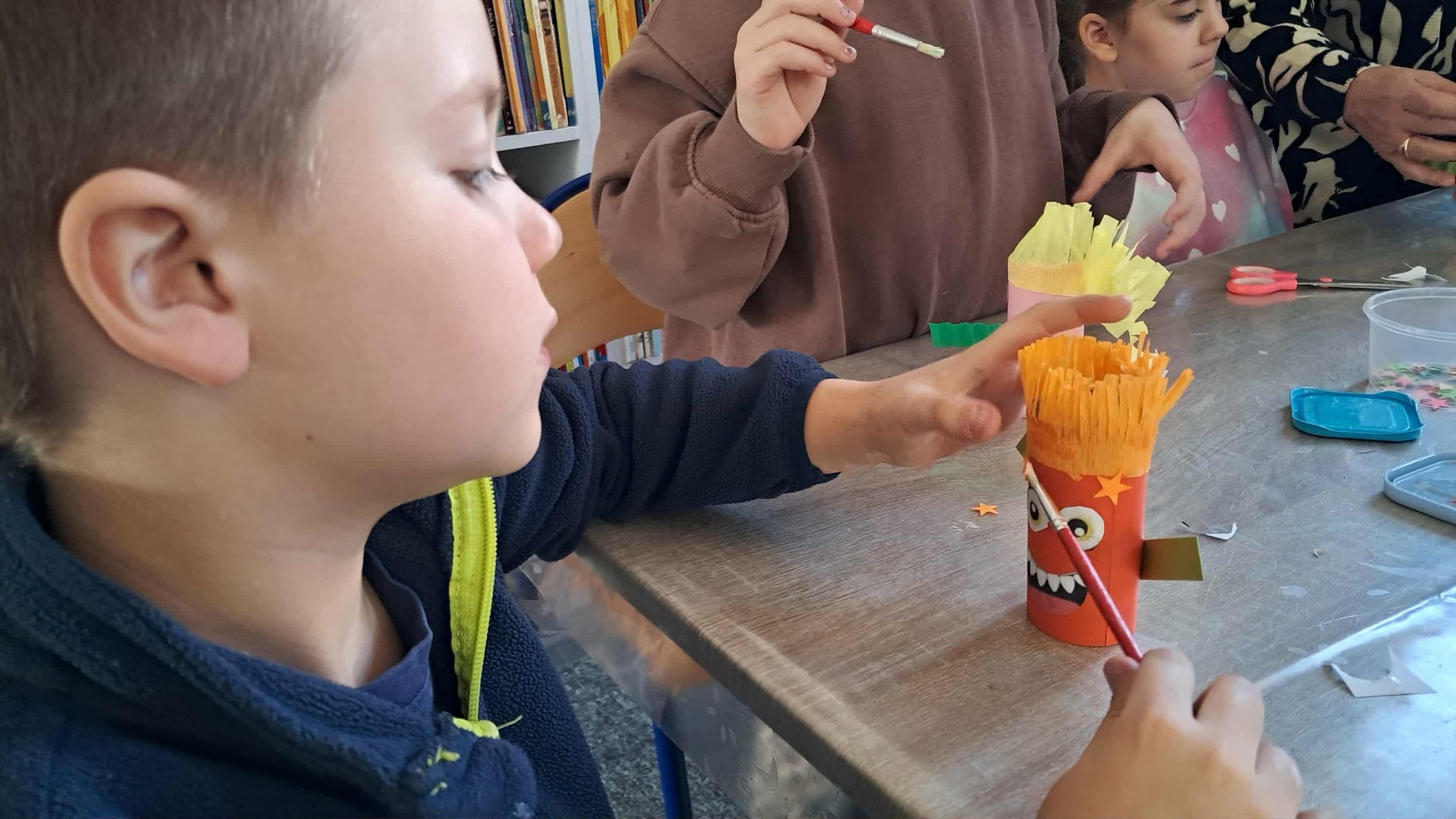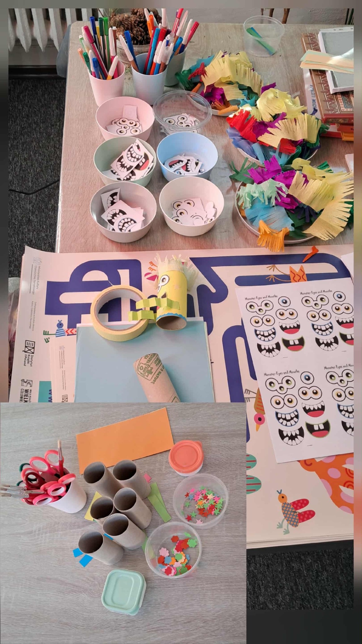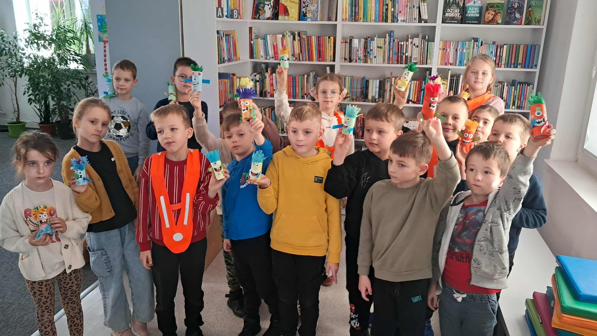 Nie zabrakło też praktyki – dzieci mogły obejrzeć księgozbiór, wypożyczyć książki oraz wziąć udział w warsztatach plastycznych, podczas których powstały piękne, kolorowe stworki.