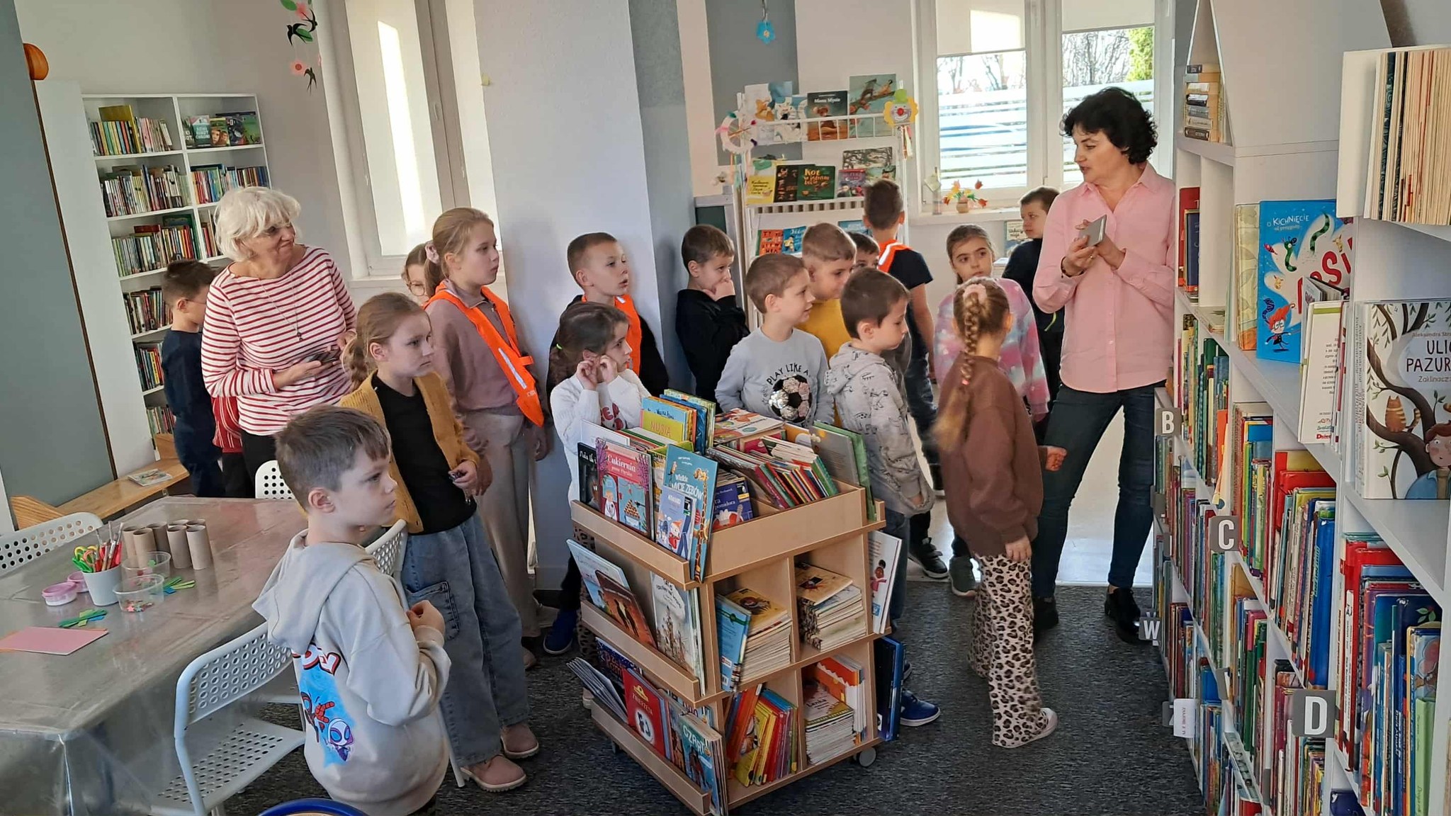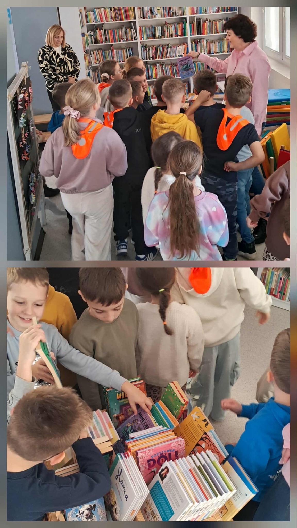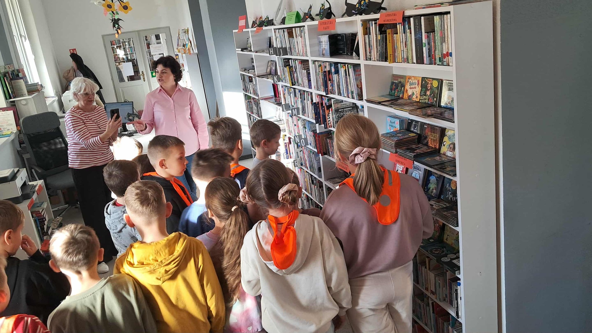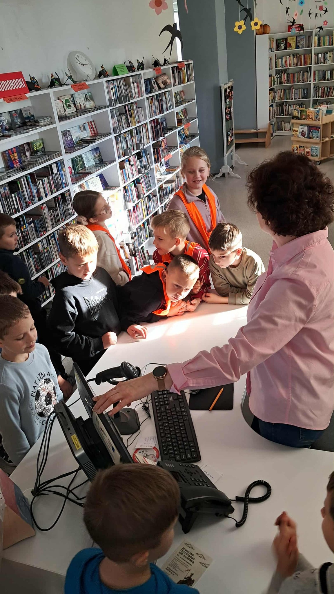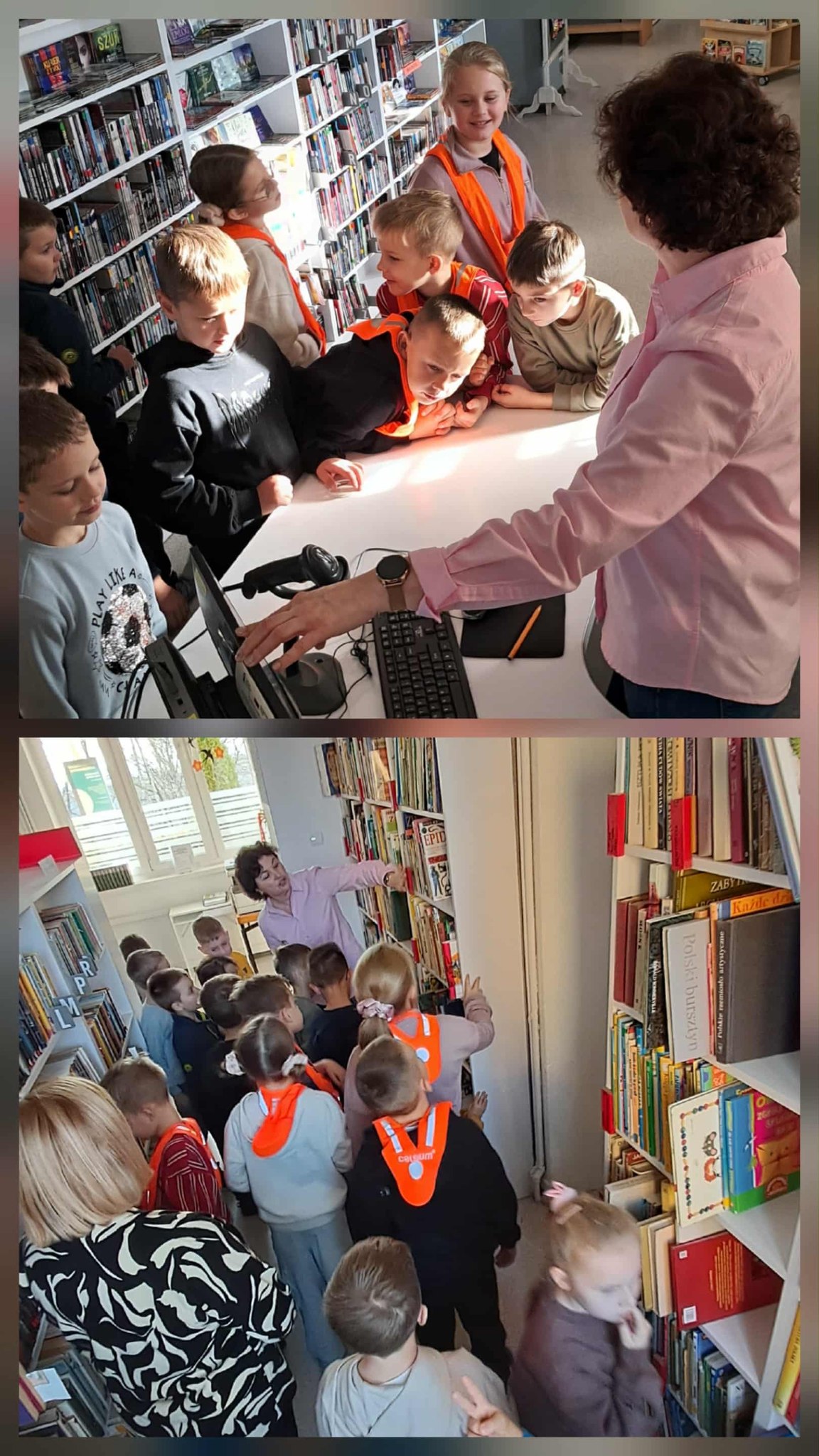 Uczniowie wraz z nauczycielkami- panią Magdaleną Adamiec i Beatą Krzepkowską, poznali tajniki pracy bibliotekarza, dowiedzieli się jak zostać czytelnikiem i jak korzystać z bogatych zasobów biblioteki.