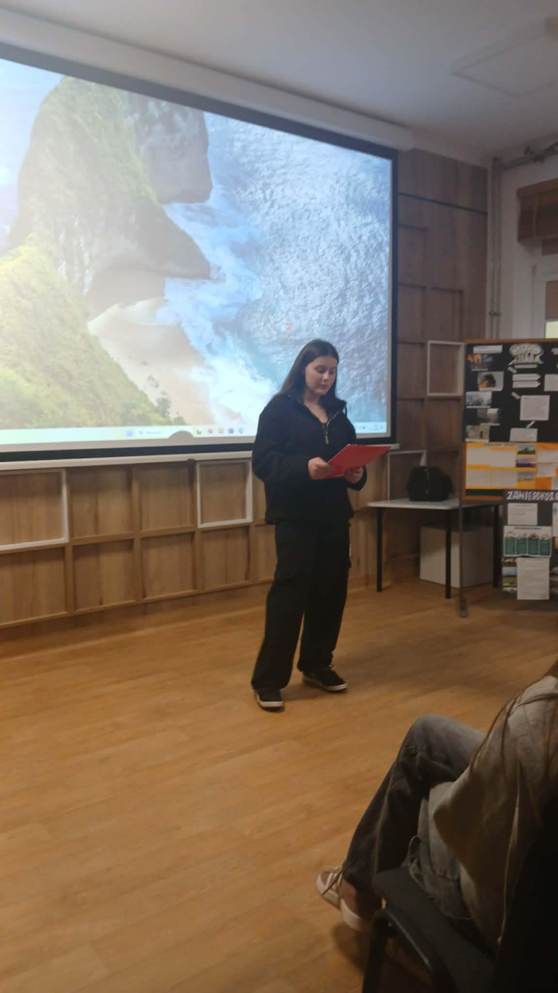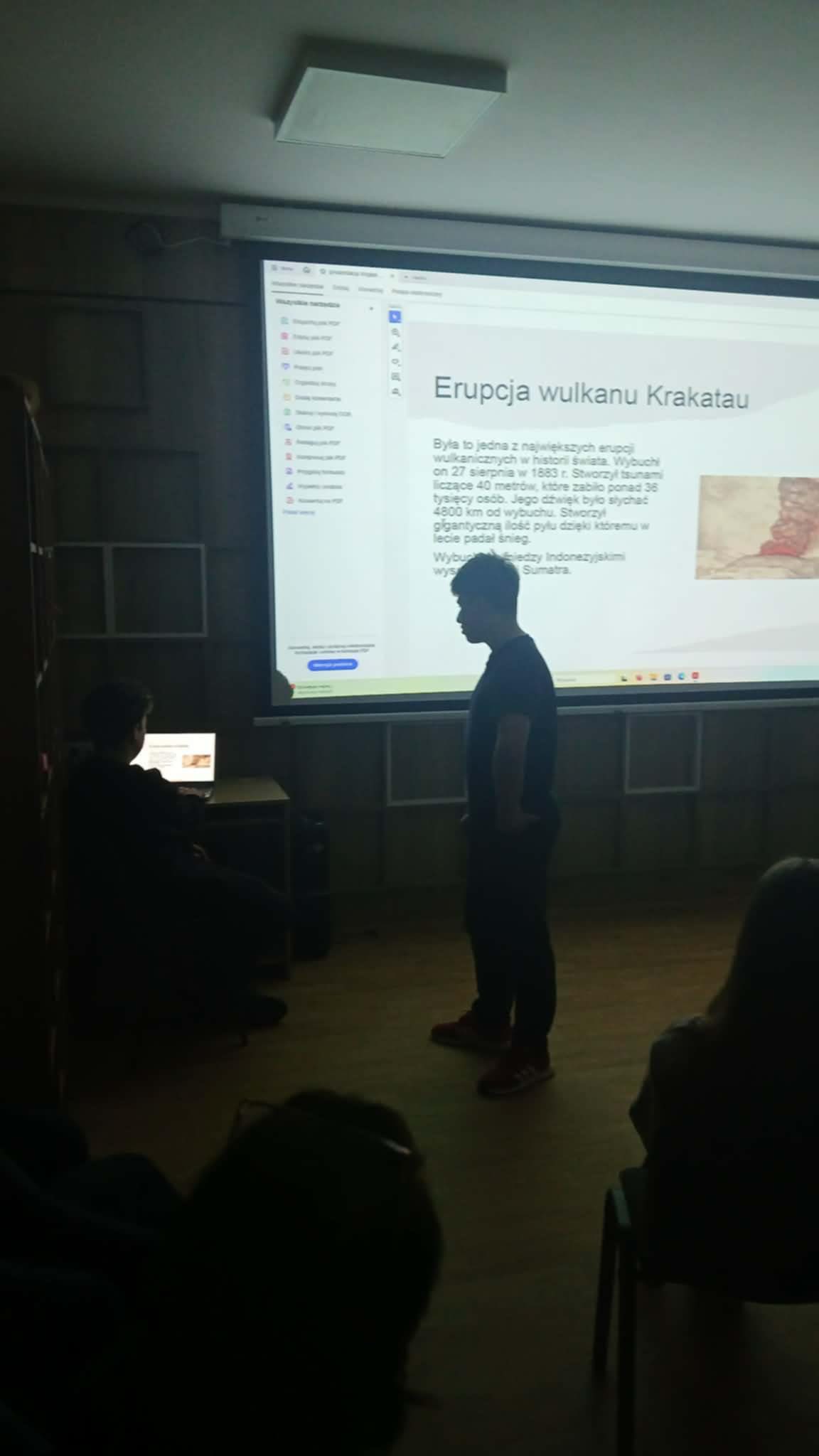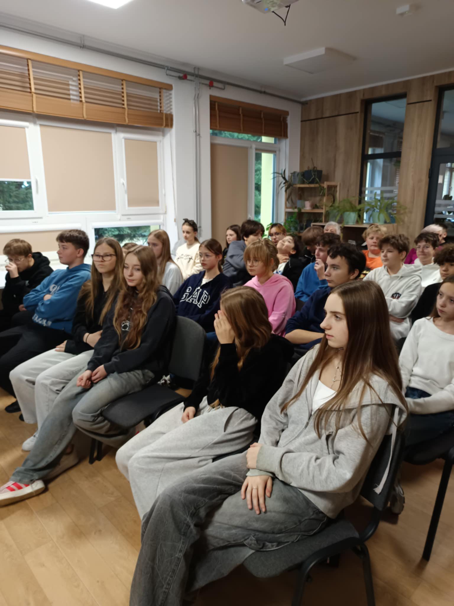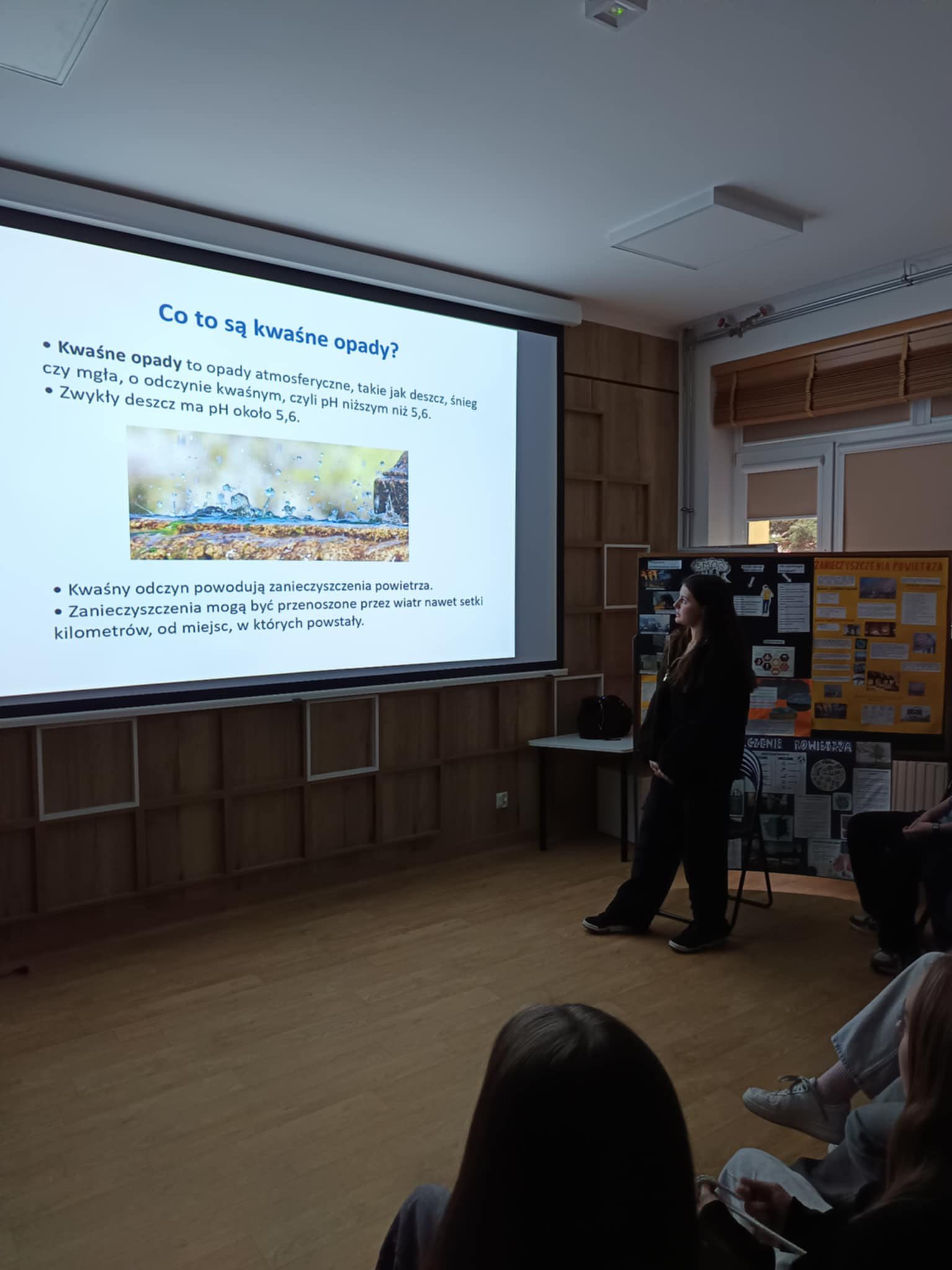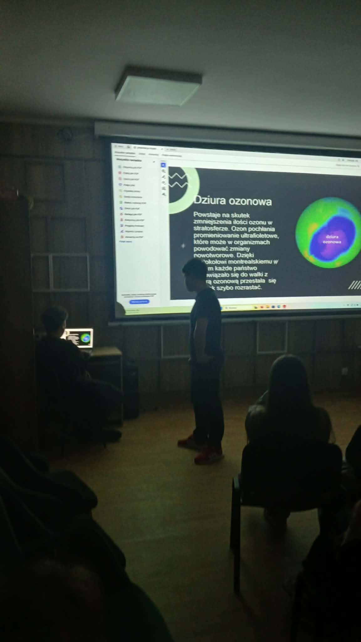 11 grudnia w sali Bergen odbyło się podsumowanie Projektu " Dzień czystego powietrza" realizowanego w ramach lekcji chemii przez klasy 7 i 8 naszej szkoły. Podczas spotkania uczniowie kl. 7dw: Wojtek, Matylda, Sandra i Ola prezentowali przygotowane przez siebie prezentacje o Zanieczyszczeniach powietrza, Smogu i Kwaśnych opadach. Pokazy obserwowali uczniowie z klasy 7b oraz zaproszeni Goście z UTW w Starachowicach, którzy chętnie uczestniczą w różnych działaniach SP11. Salę ozdobiły plakaty wykonane przez uczniów kl. 7 i 8 naszej szkoły.