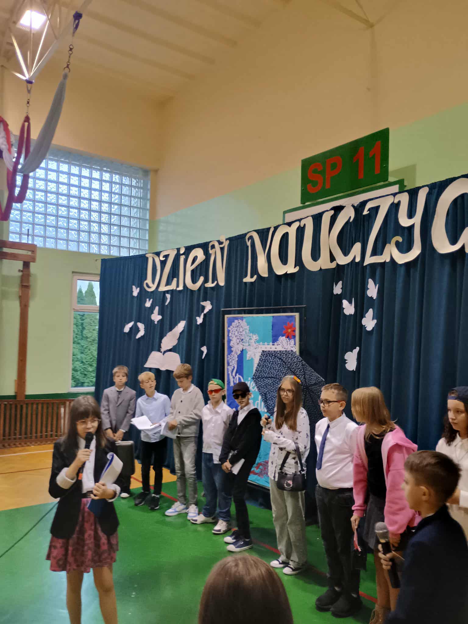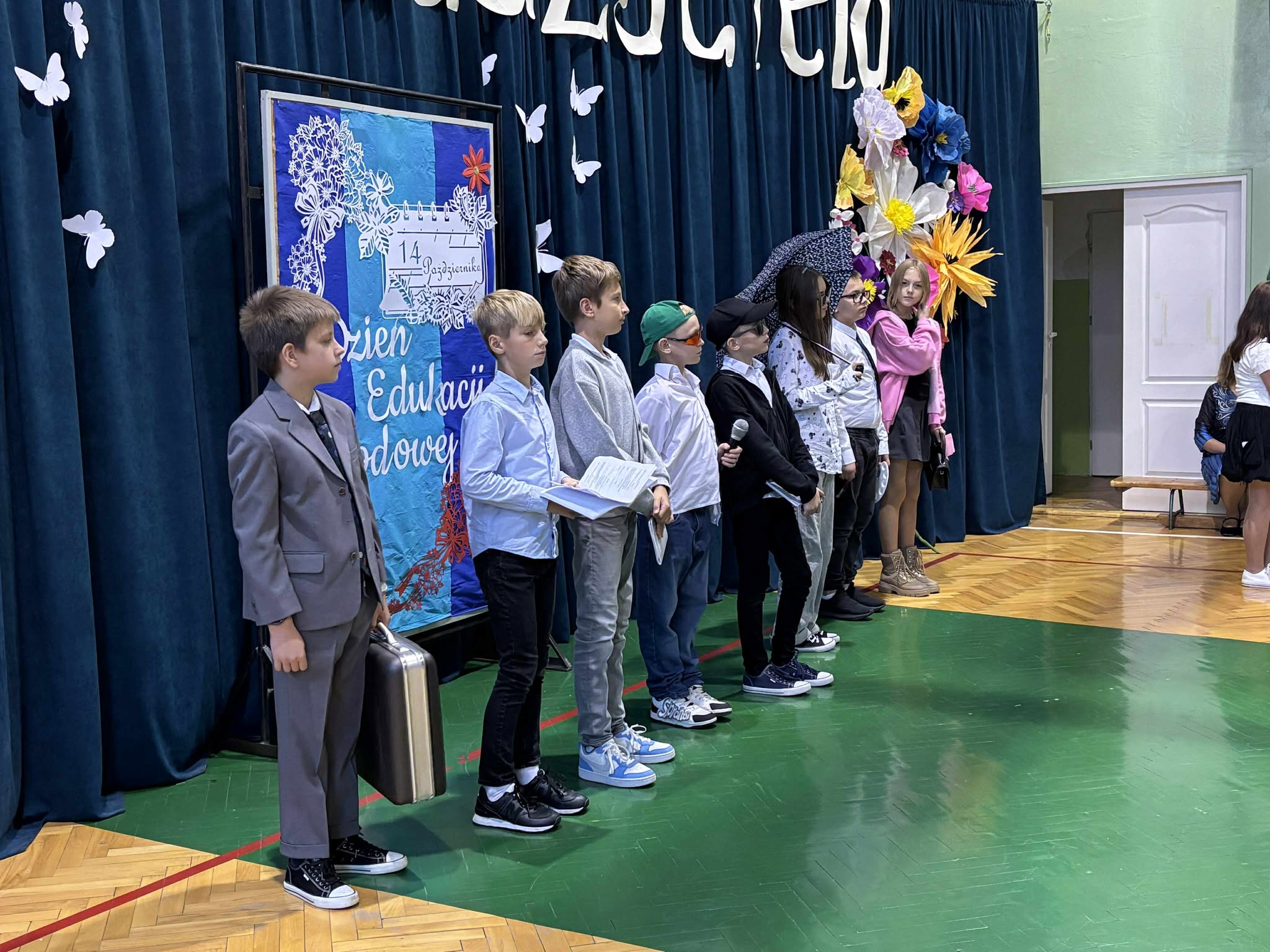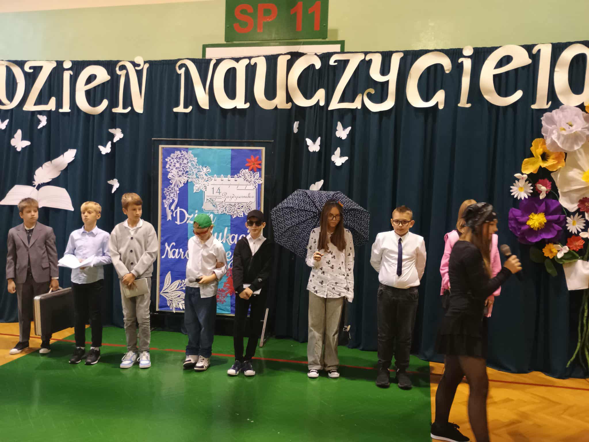 Przedstawienie w wykonaniu uczniów z klasy 5a oraz 6ai ukazujące w humorystyczny sposób szkolną rzeczywistość było częścią Akademii przygotowanej na cześć obchodzonego 14 października Dnia Edukacji Narodowej. Z tej okazji Dyrektor Szkoły, p. Zofia Kuska - Jakubowska złożyła życzenia wszystkim nauczycielom oraz pracownikom szkoły, a także podkreśliła rolę rodziców jako pierwszych nauczycieli swoich dzieci. Uroczystość uświetnił występ dziewcząt należących do chóru, a przedstawiciele Szkolnego Samorządu wręczyli nauczycielom własnoręcznie wykonane upominki, by tym sposobem okazać im uznanie i wdzięczność.