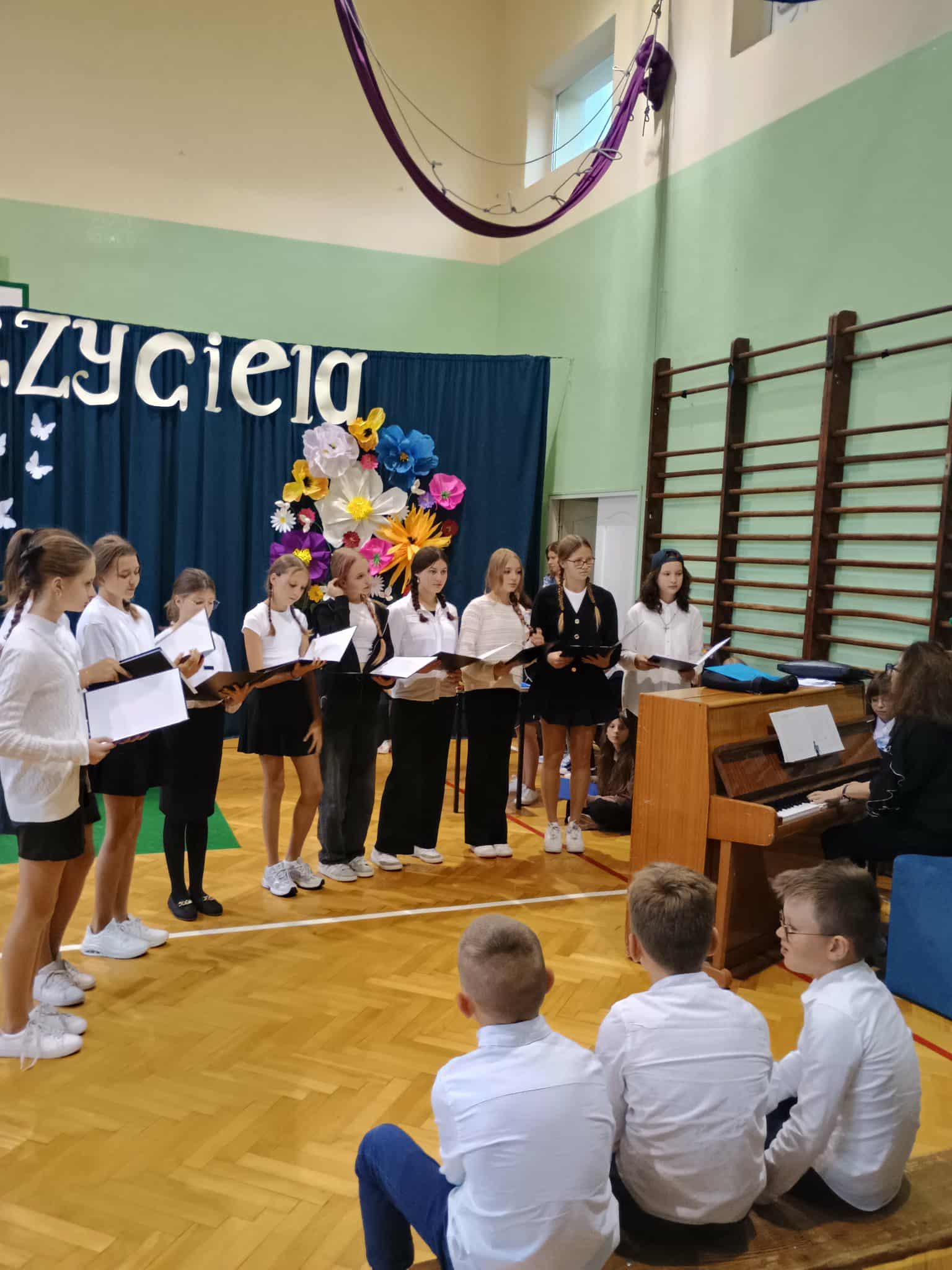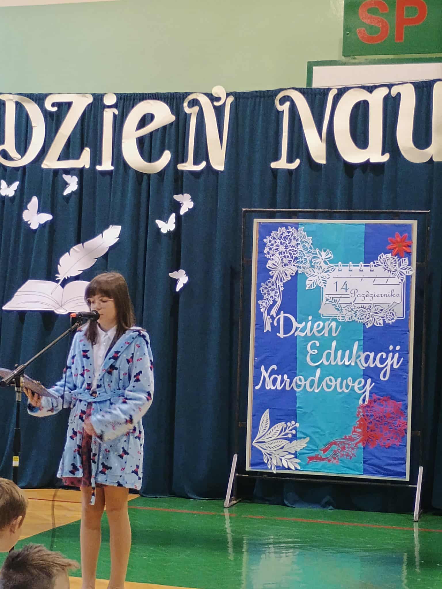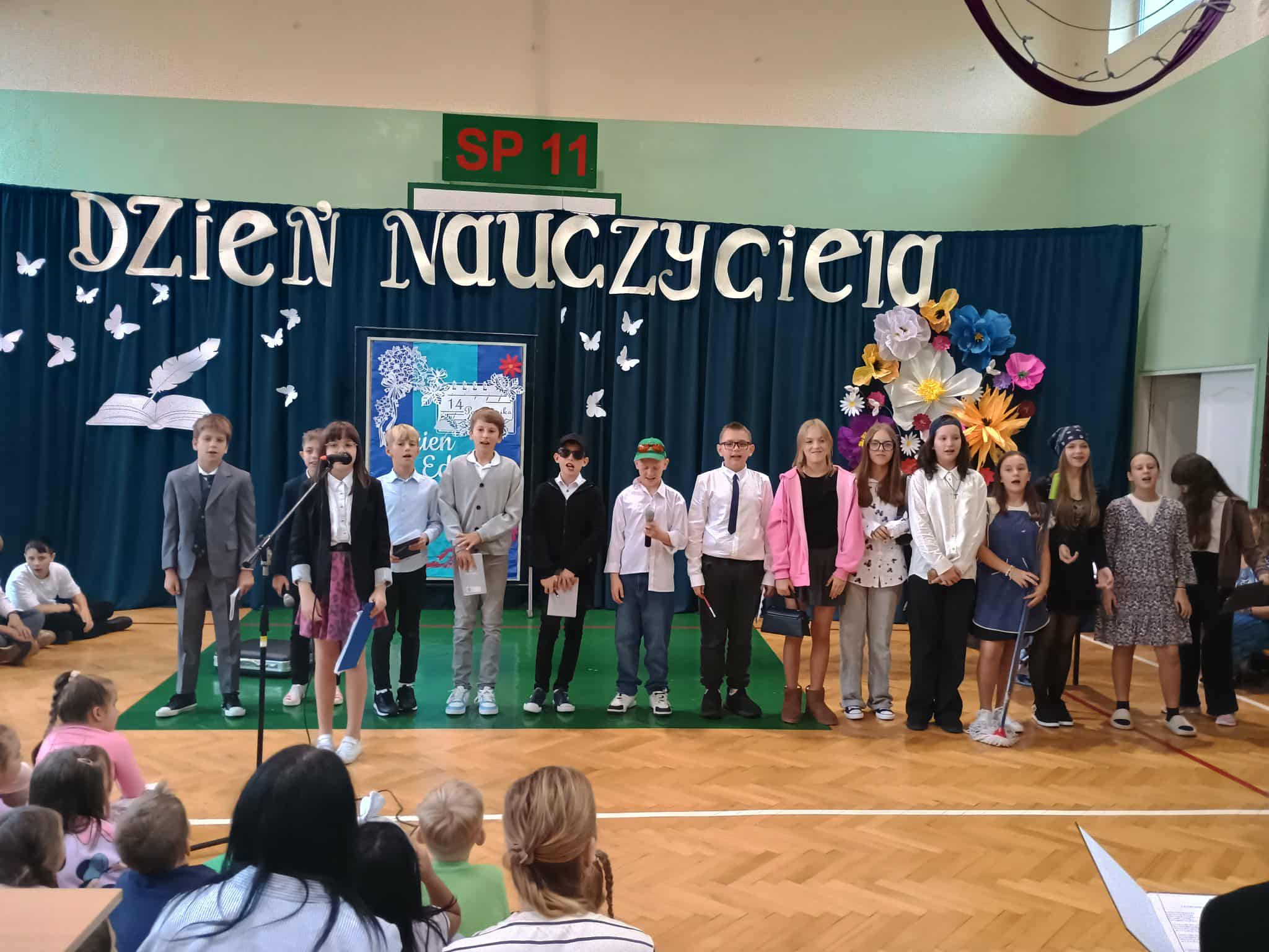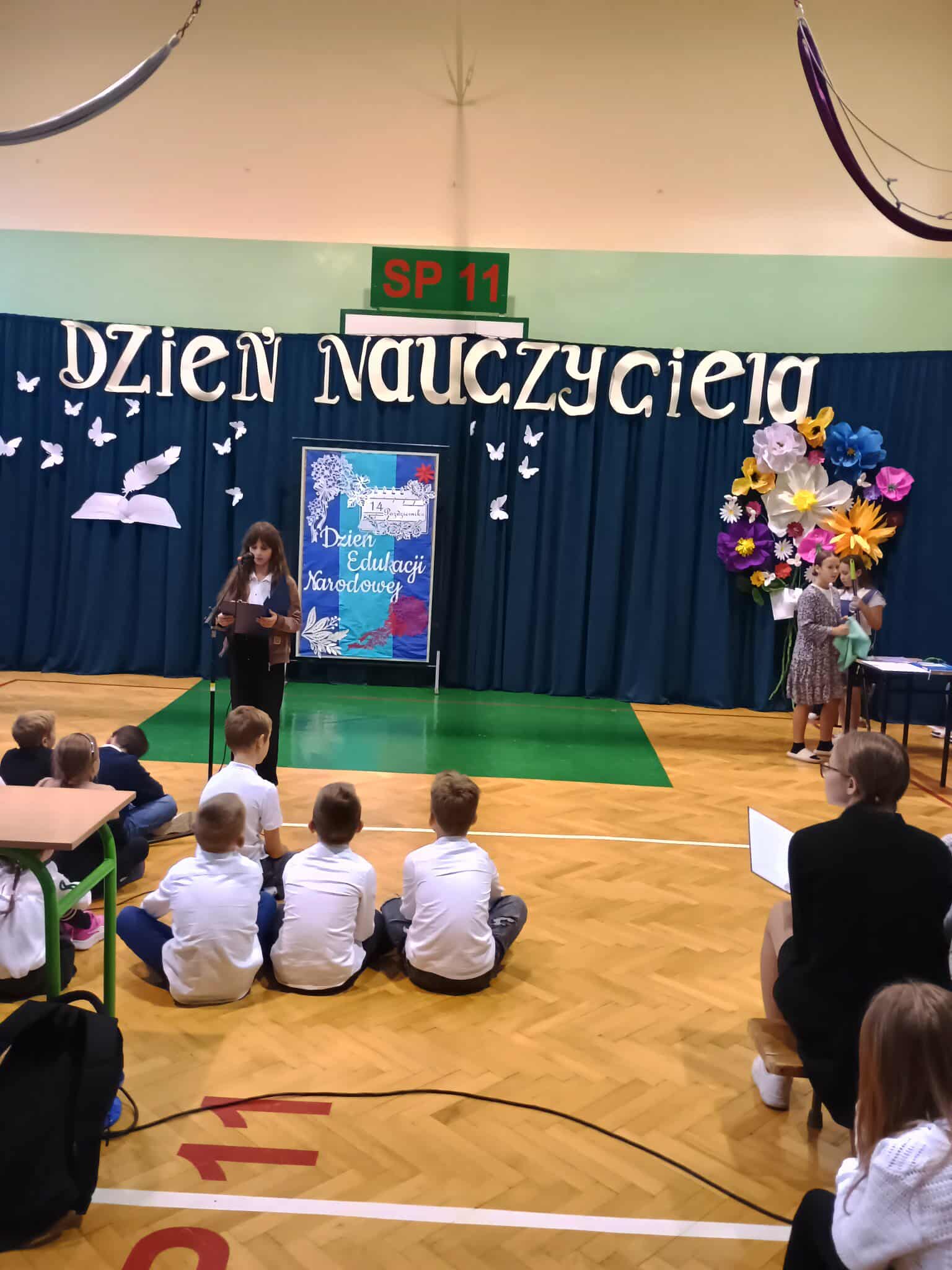 Przedstawienie w wykonaniu uczniów z klasy 5a oraz 6ai ukazujące w humorystyczny sposób szkolną rzeczywistość było częścią Akademii przygotowanej na cześć obchodzonego 14 października Dnia Edukacji Narodowej. Z tej okazji Dyrektor Szkoły, p. Zofia Kuska - Jakubowska złożyła życzenia wszystkim nauczycielom oraz pracownikom szkoły, a także podkreśliła rolę rodziców jako pierwszych nauczycieli swoich dzieci. Uroczystość uświetnił występ dziewcząt należących do chóru, a przedstawiciele Szkolnego Samorządu wręczyli nauczycielom własnoręcznie wykonane upominki, by tym sposobem okazać im uznanie i wdzięczność.