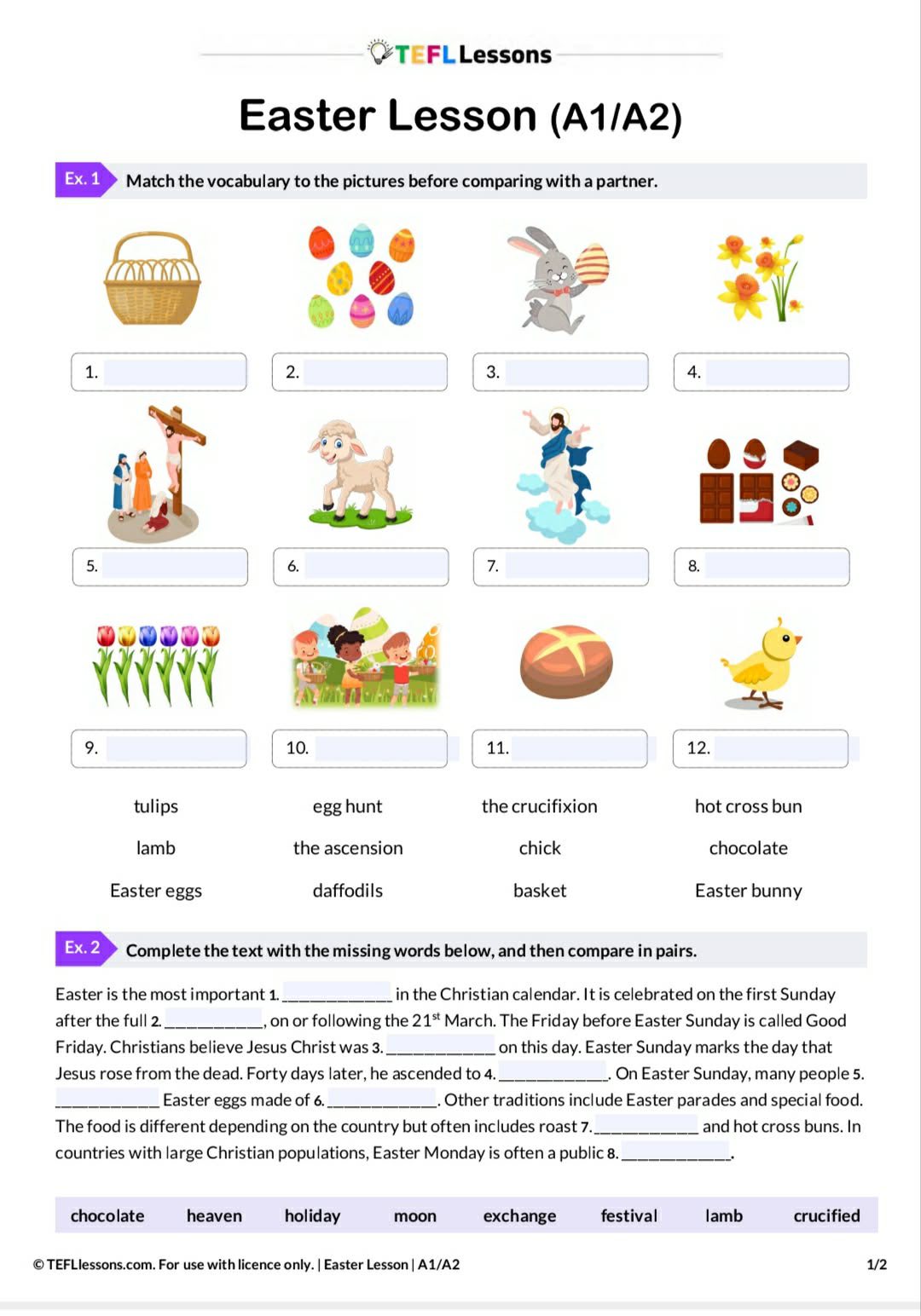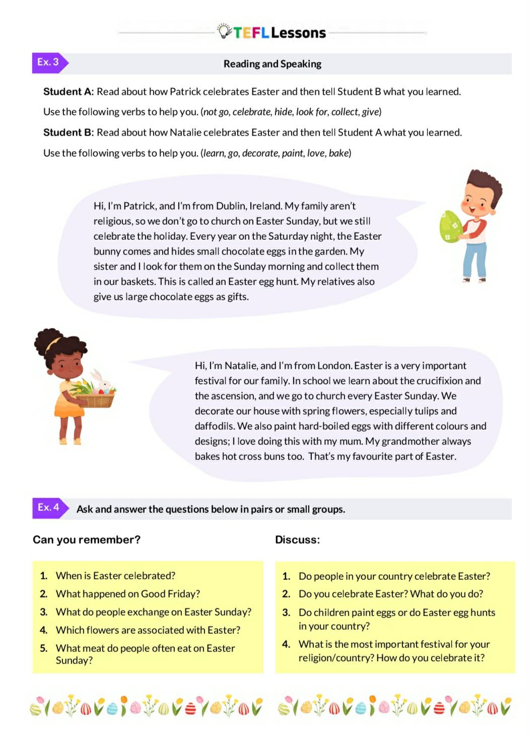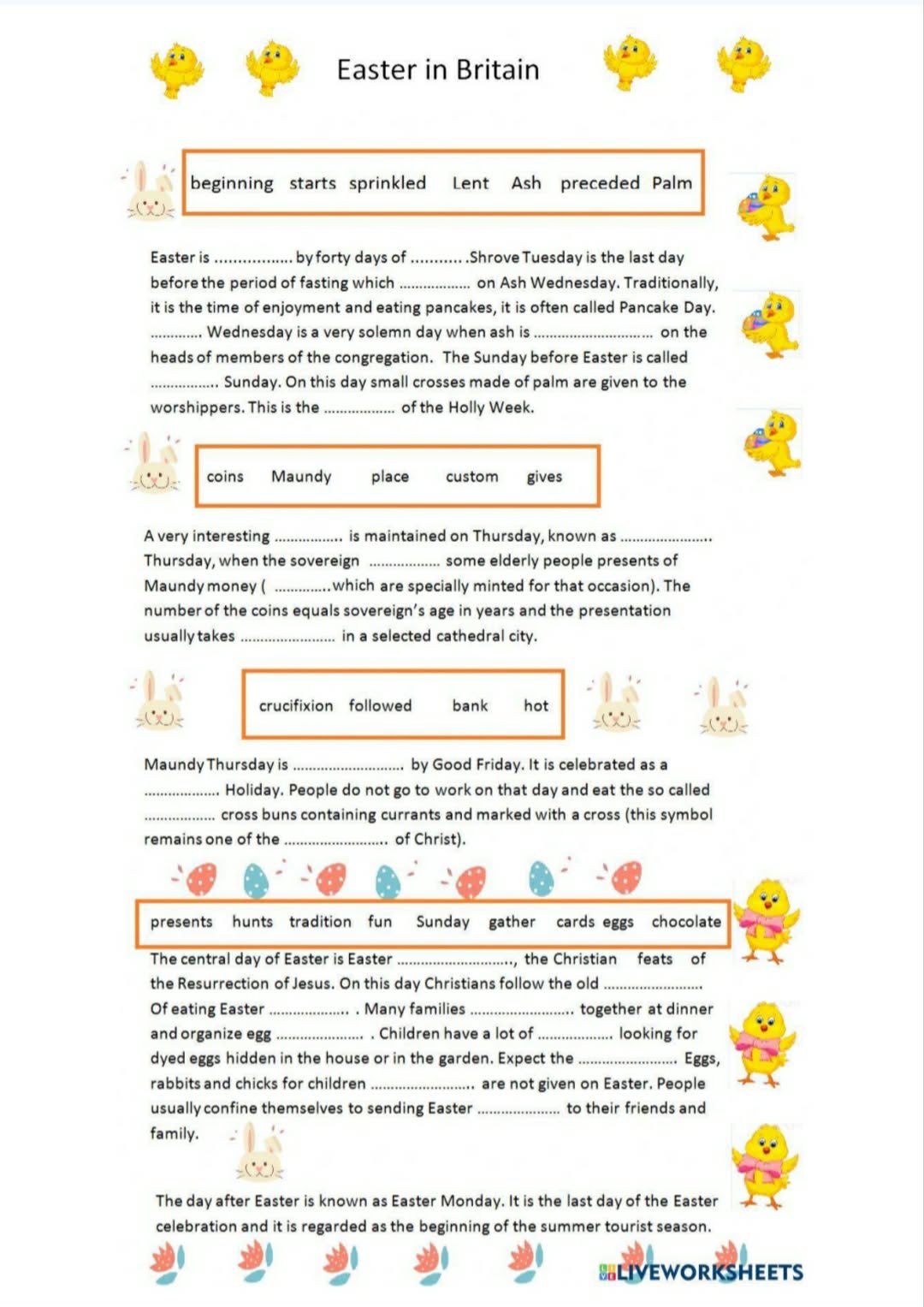 obejrzeli krótki filmik "Easter in the UK" i uzupełniali krótką informację o tym święcie