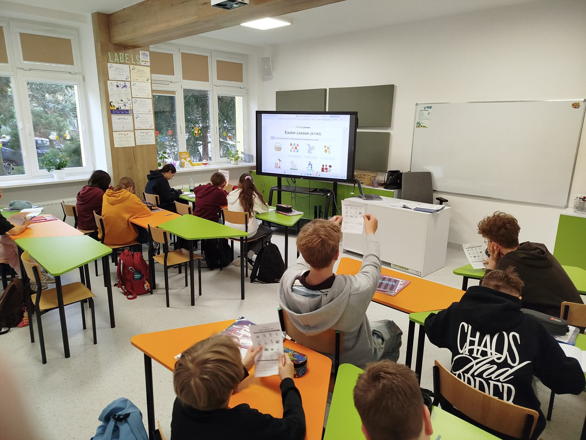 Uczniowie z grup angielskich zaawansowanych z klas 5a, 5b, 6ai i 6b na lekcjach o Wielkanocy poznali nie tylko zwyczaje i tradycje wielkanocne w Wielkiej Brytanii, ale też rozwijali swoje umiejętności językowe: