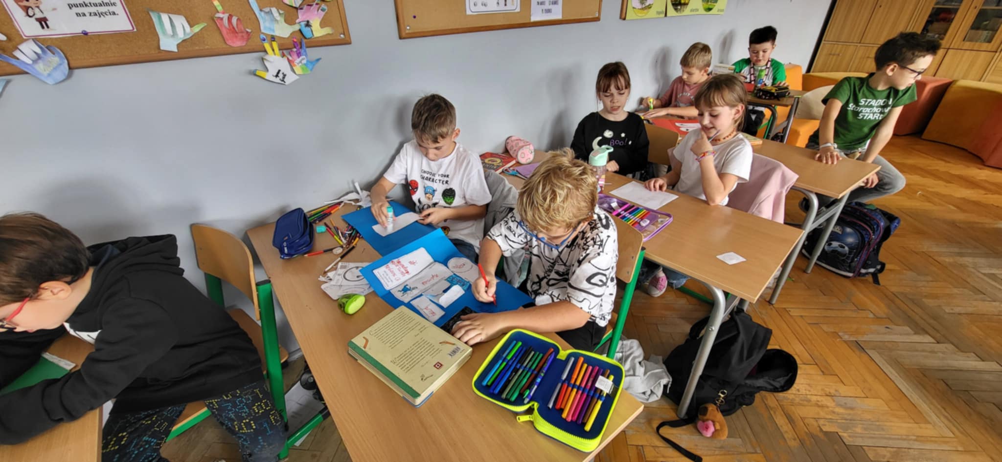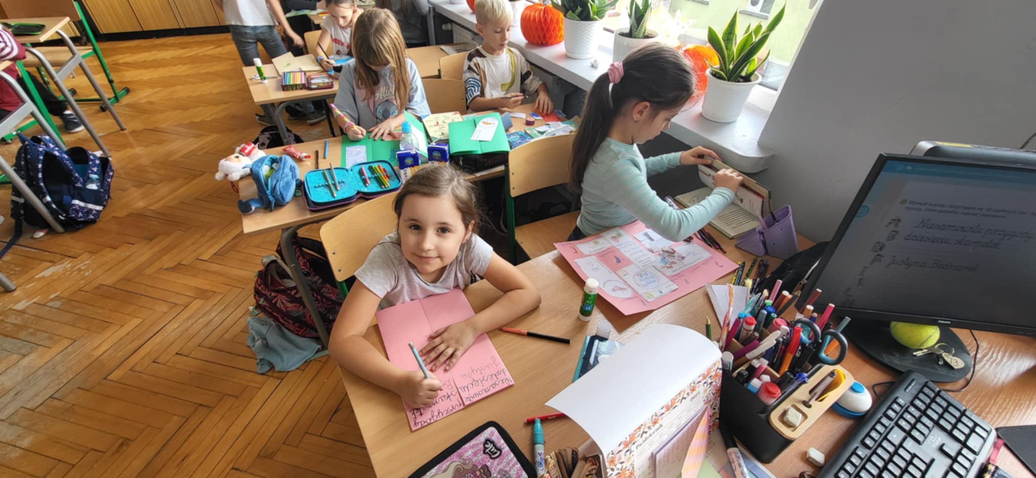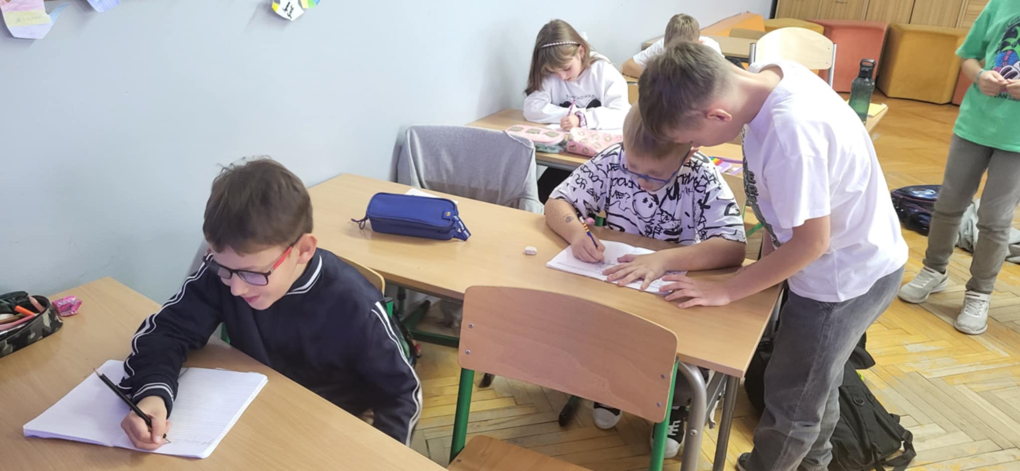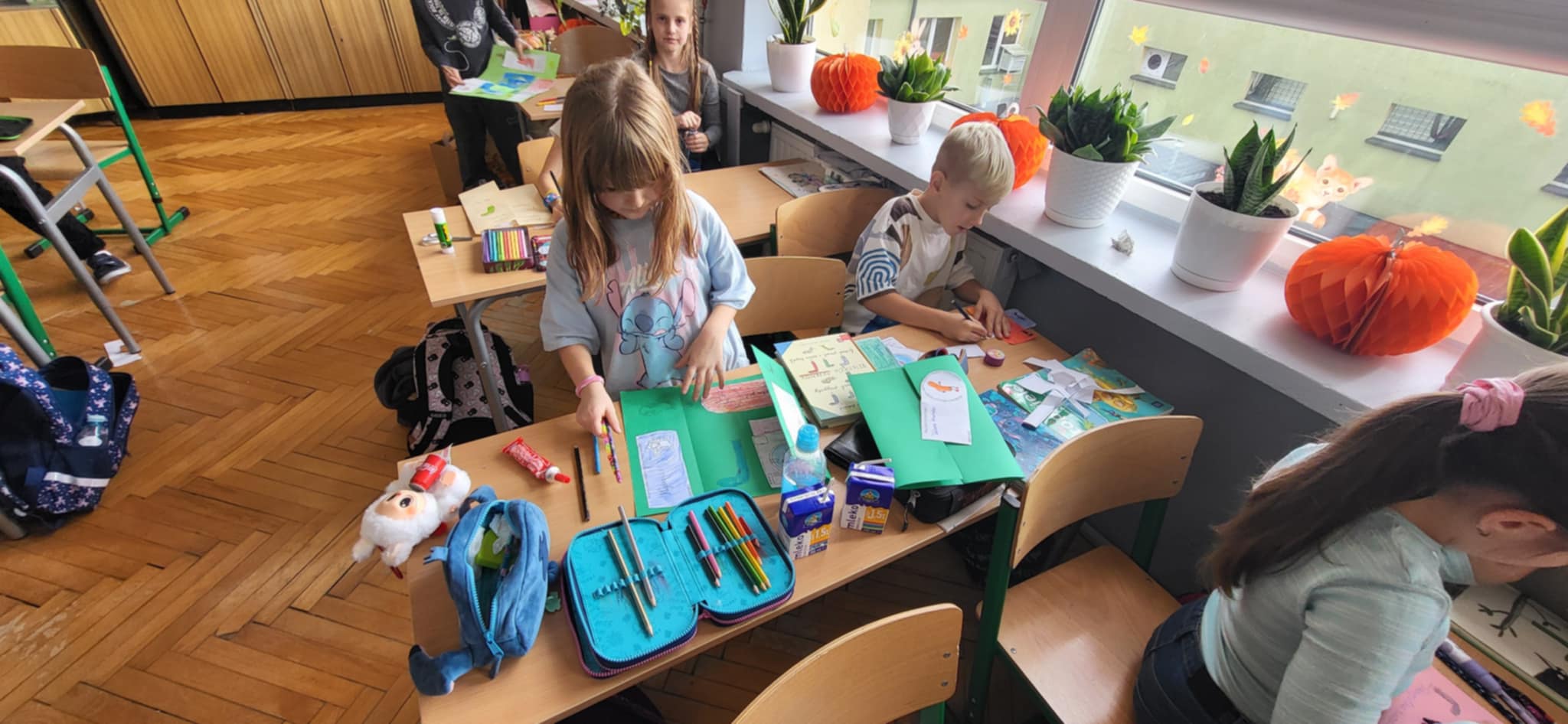 Podczas lekcji języka polskiego pisaliśmy dyktando biegane – wesołą i ruchliwą alternatywę dla tradycyjnej nauki ortografii. Nie zabrakło też pracy z lekturą – tworząc lapbooki do książki „Niesamowite przygody dziesięciu skarpetek” Joanny Bednarek, wykazaliśmy się pomysłowością i kreatywnością. W tym miesiacu wspieraliśmy również kiermasz charytatywny oraz zbiórkę karmy dla Schroniska w Rudniku.