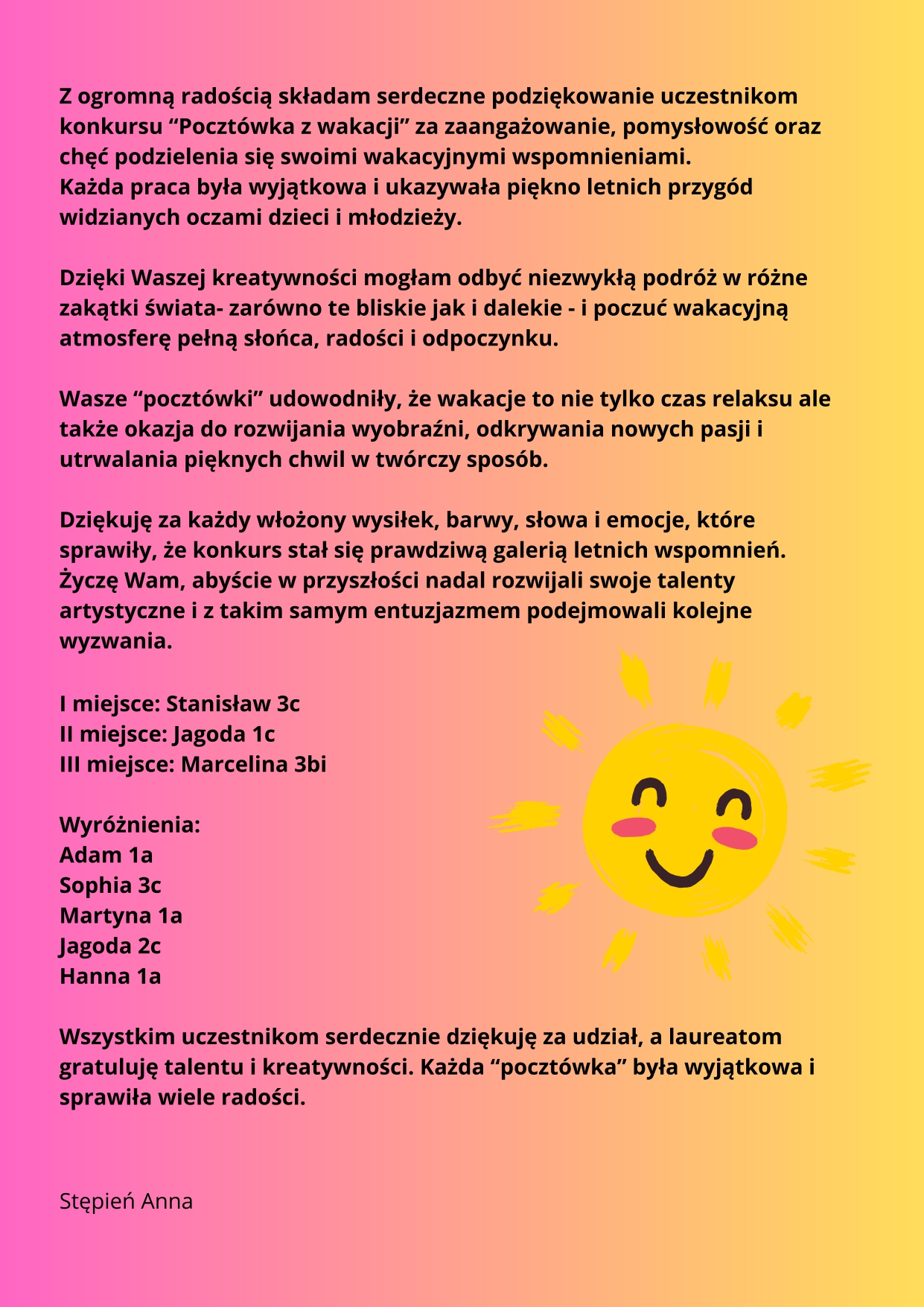 Konkurs plastyczny ''Pocztówka z wakacji''