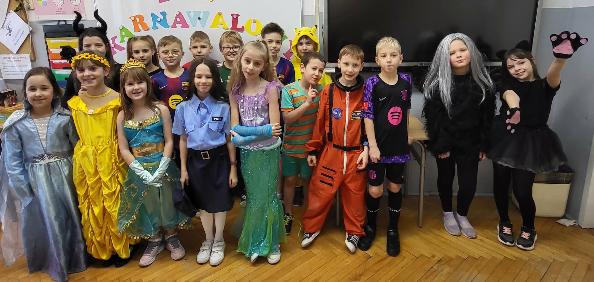 Miesiąc rozpoczęliśmy od kolorowej zabawy karnawałowej pełnej tańców i śmiechu. W kolejnych tygodniach na zajęciach wychowania fizycznego bawiliśmy się w różne zabawy sprawnościowe, ćwicząc zwinność i współpracę.