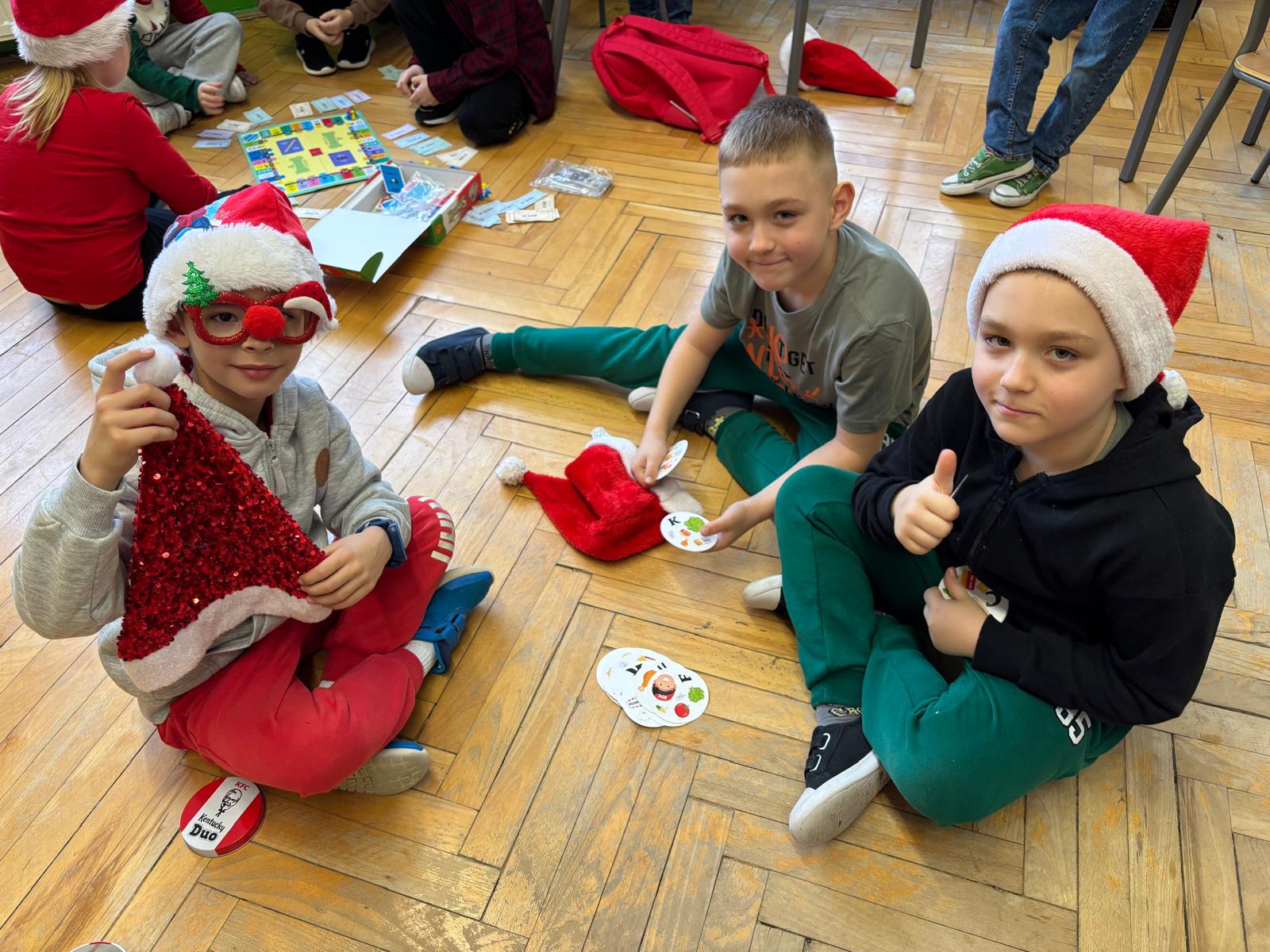 Przedszkolaki - Krasnale, Biedronki, Motylki i Pszczółki oraz uczniowie klas I–VIII świetnie bawili się podczas mikołajkowych atrakcji, a nauczyciele… cóż, oni też dali się ponieść świątecznej atmosferze i zamienili się w prawdziwe mikołajki i pomocników Mikołaja!