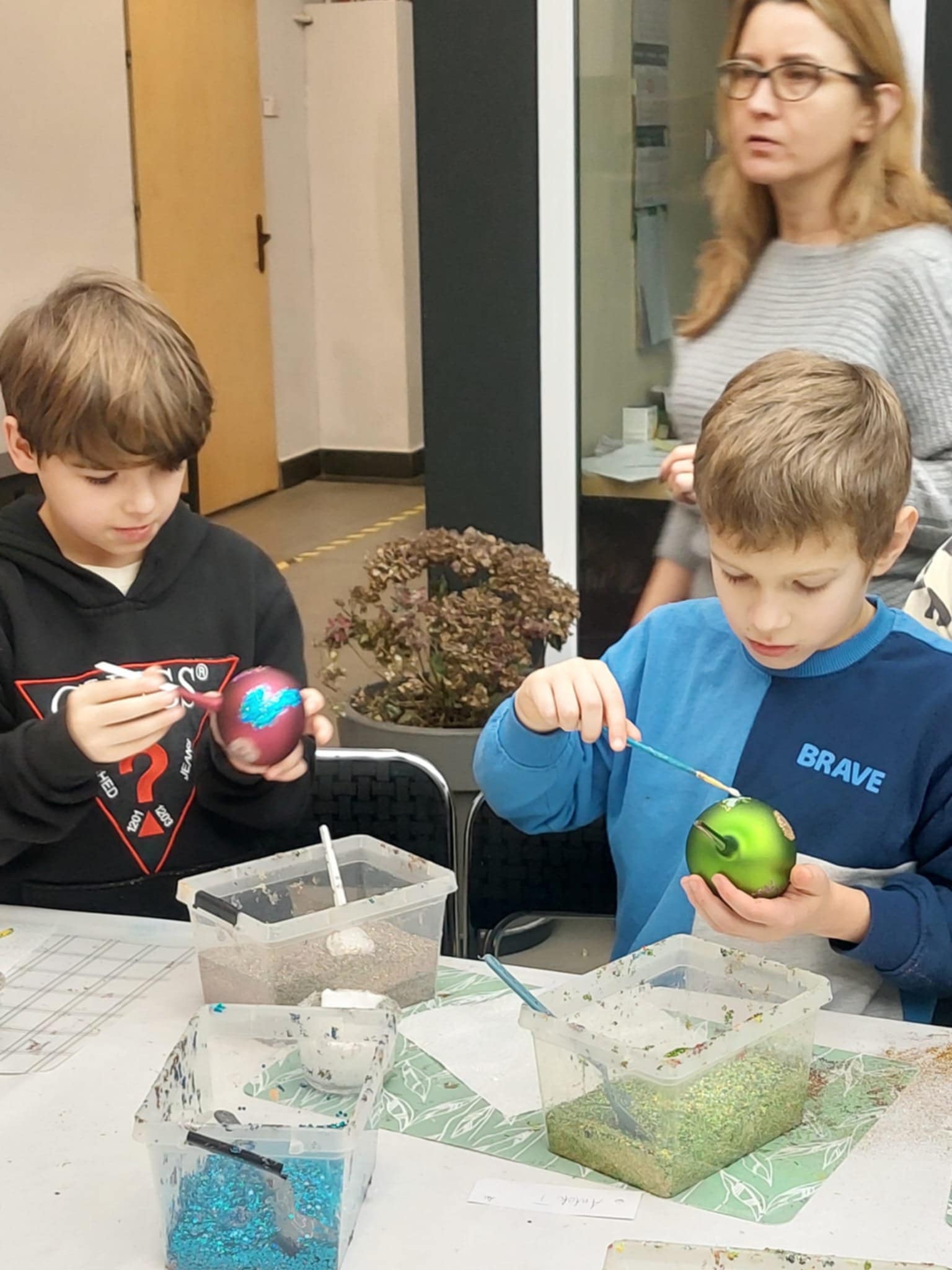 Najpiękniejszym momentem były warsztaty rękodzieła – każde dziecko mogło samodzielnie wykonać i ozdobić swoją własną bombkę. Pełne brokatu, wzorów i świątecznych kolorów – powstały prawdziwe małe arcydzieła.