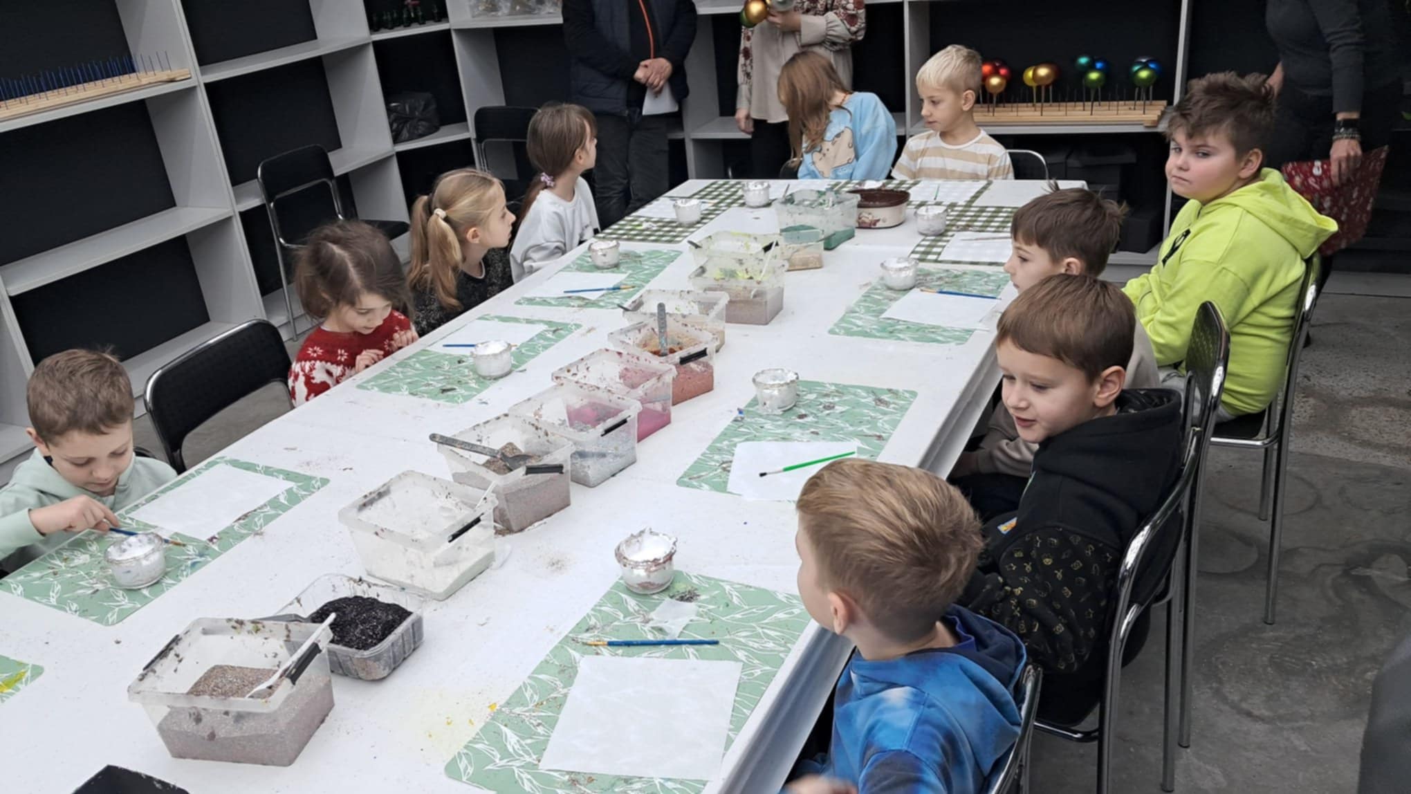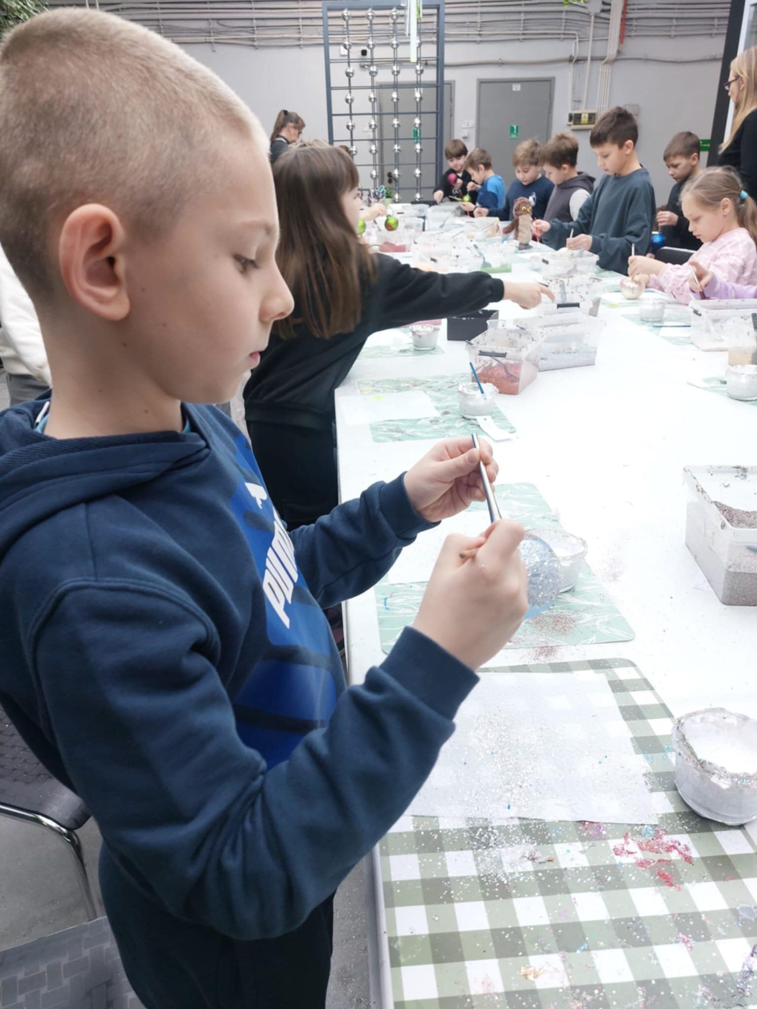 Potem ruszyliśmy dalej – zwiedziliśmy całą fabrykę, obserwując krok po kroku, jak powstaje bombka. Od formowania gorącego szkła aż po pełne błysku ozdabianie – wszystko działo się na naszych oczach. Widok płynnego szkła, srebrzenia i kolorowego dekorowania zrobił ogromne wrażenie na małych odkrywcach!