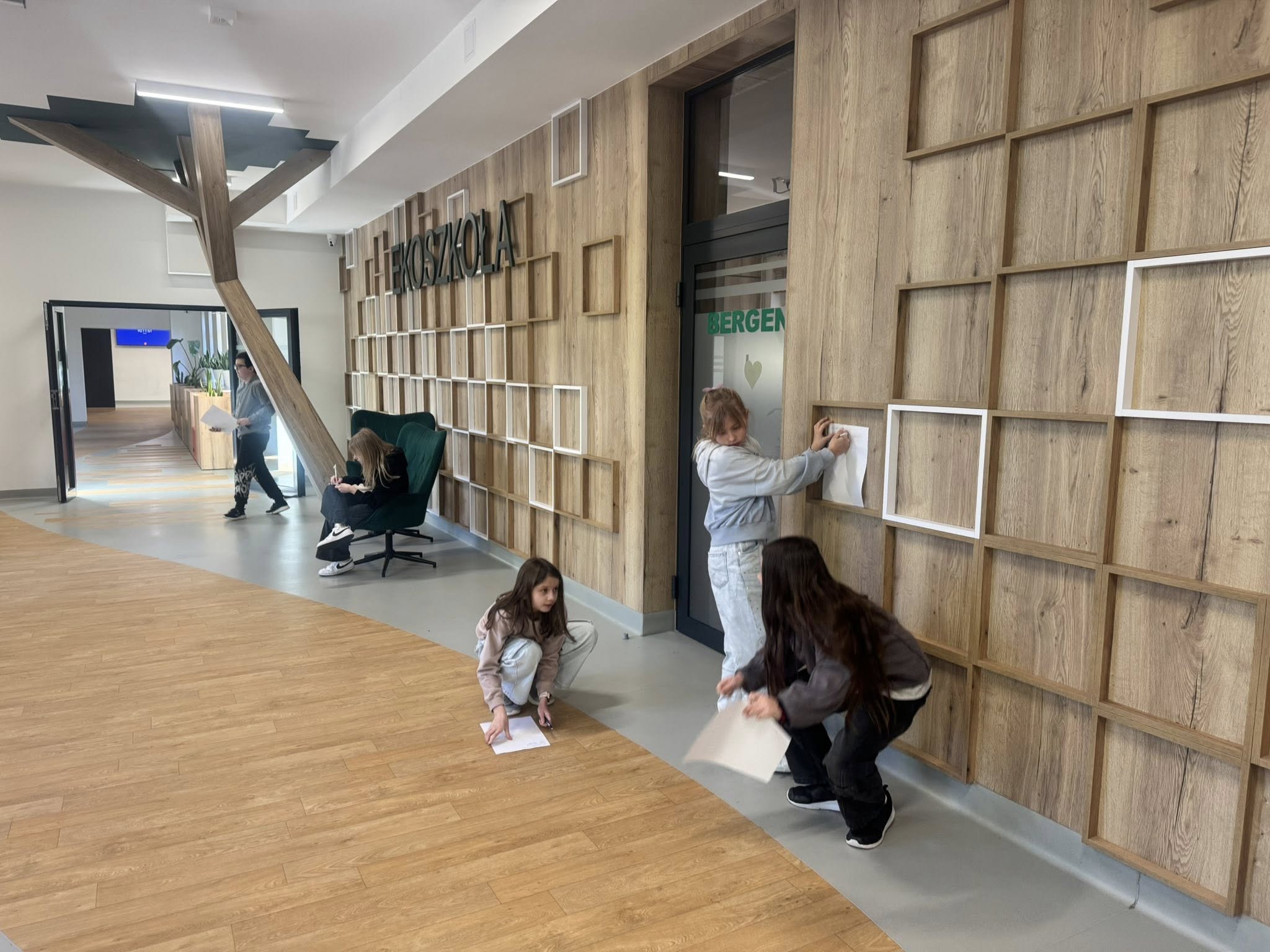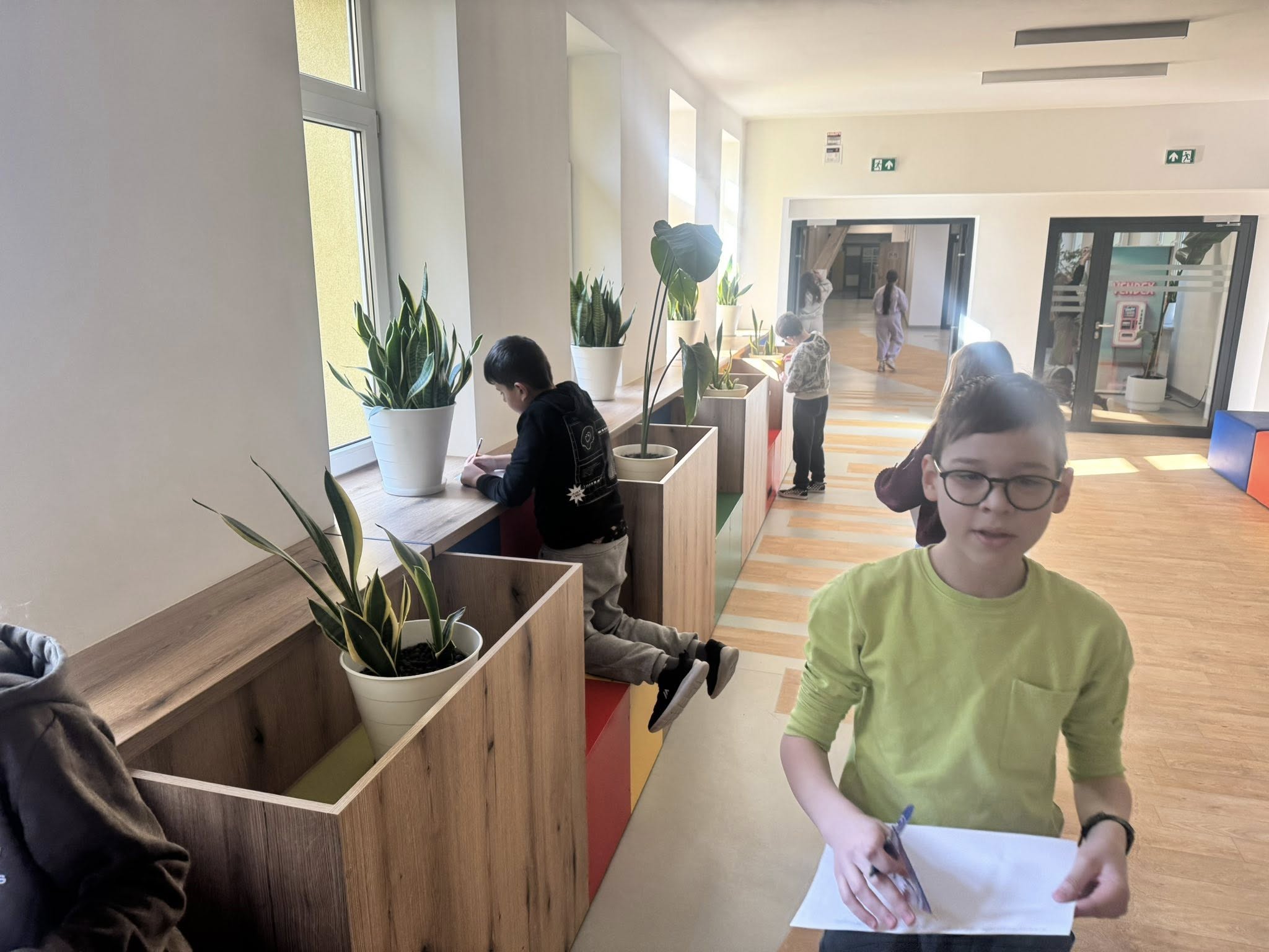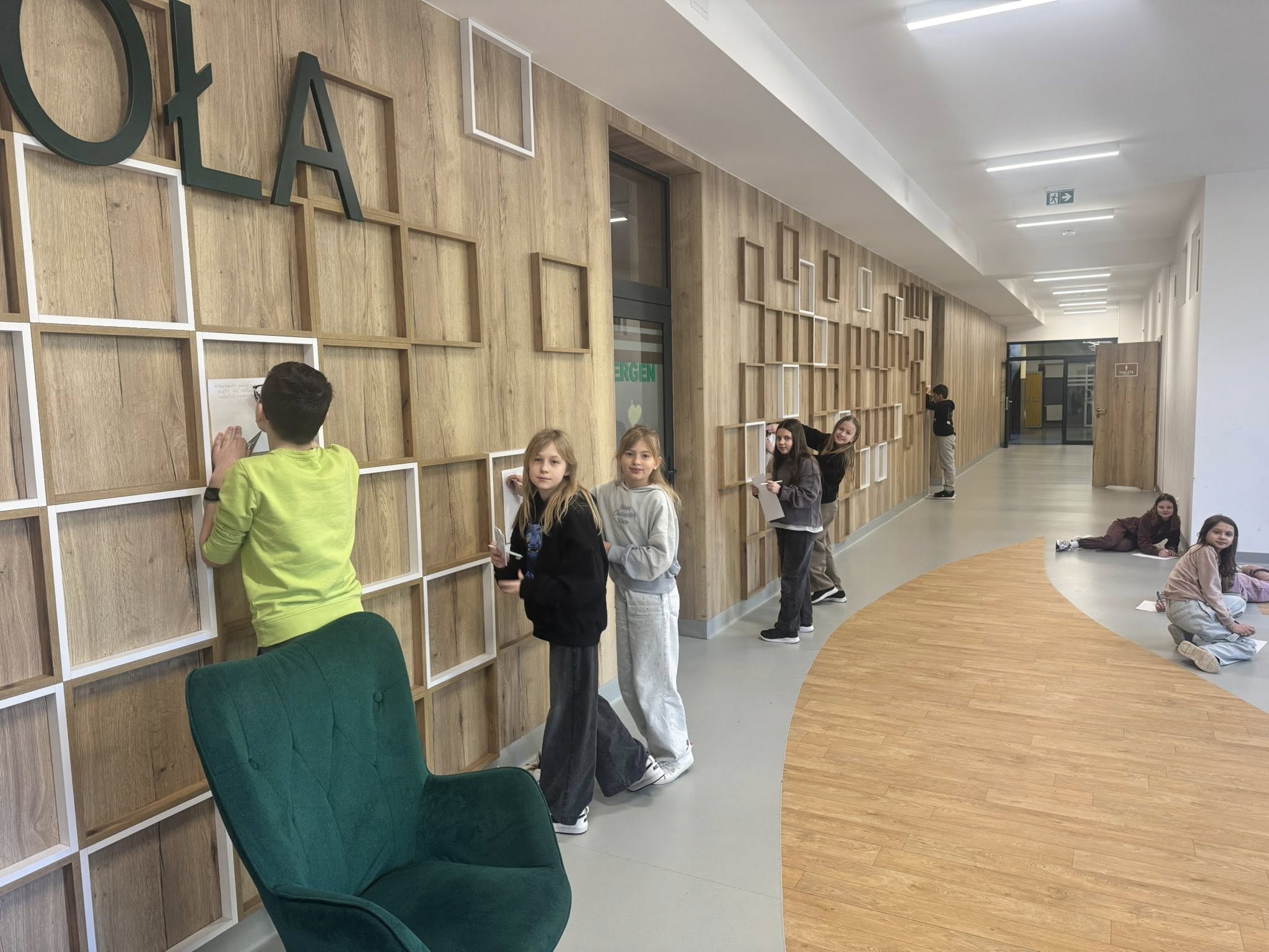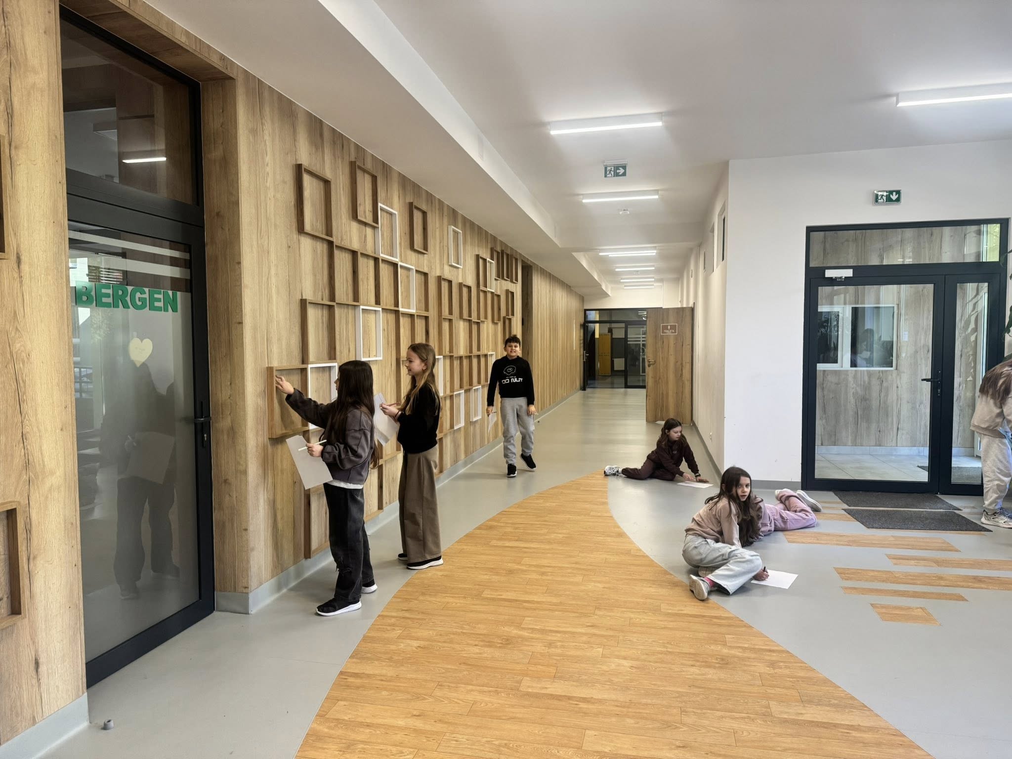 Młodzi detektywi na tropie czyli poszukiwania odcinków prostopadłych i równoległych w otaczającej nas szkolnej rzeczywistości. Dziś uczniowie klasy 4b podczas lekcji matematyki, zdobywszy uprzednio wiedzę teoretyczną, prowadzili badania… Szukali na szkolnych korytarzach przedmiotów, w których można odnaleźć odcinki prostopadle i równoległe. Zabawa była przednia, pomysłów bez liku. W sali lekcyjnej wymieniali się swoimi obserwacjami. Kreatywność i spostrzegawczość uczniów spotkała się z ogromnym uznaniem nauczyciela.