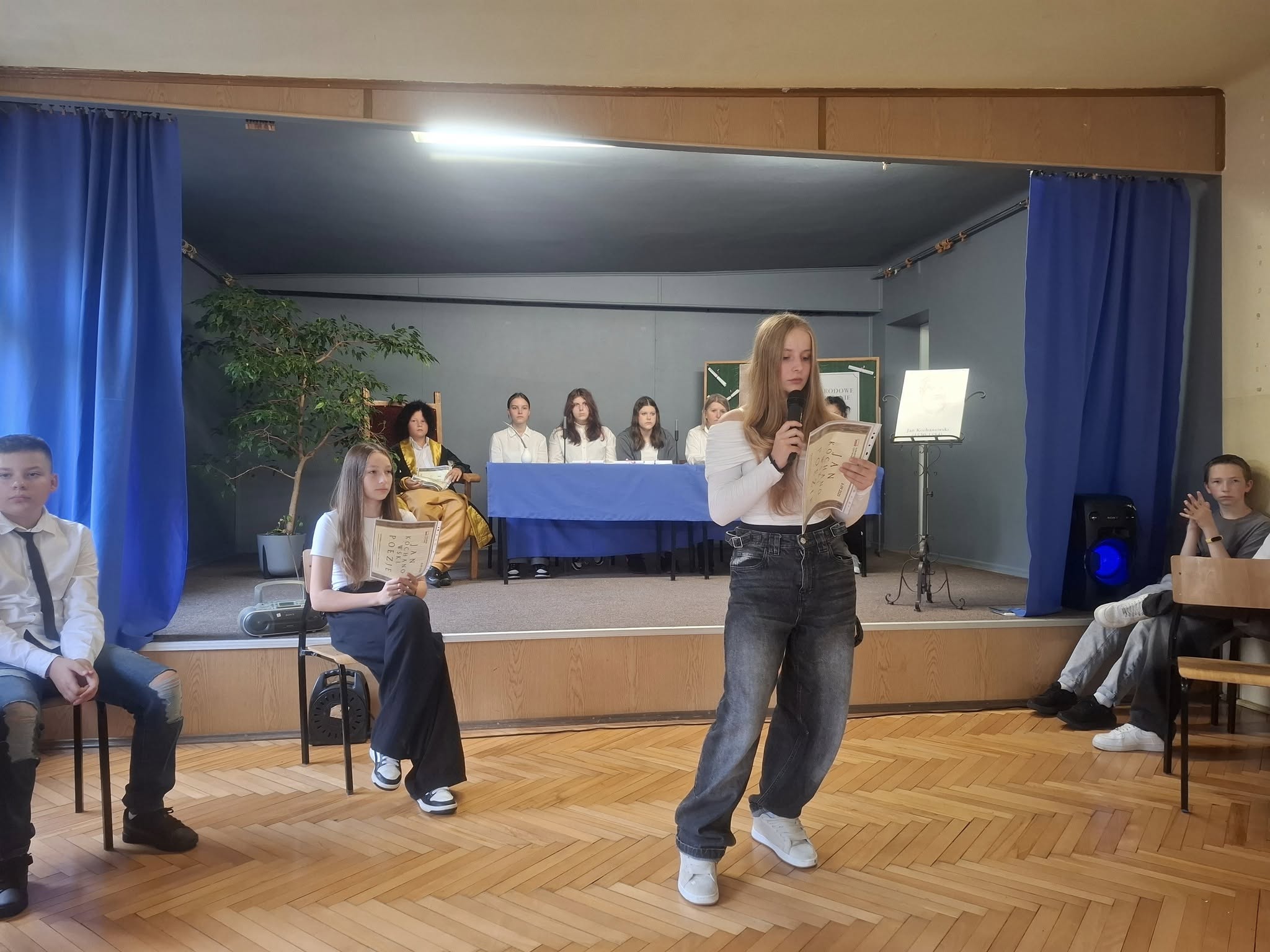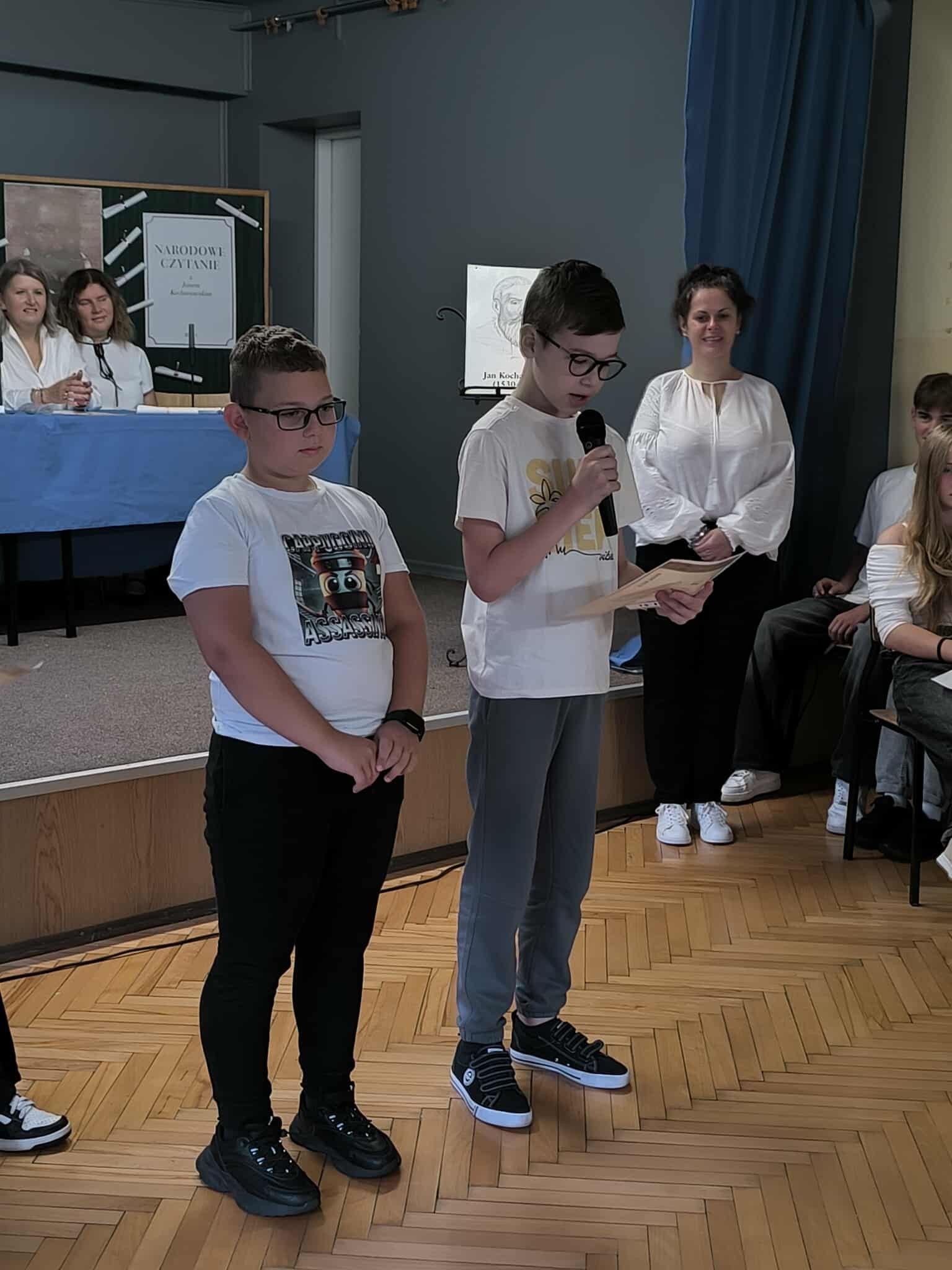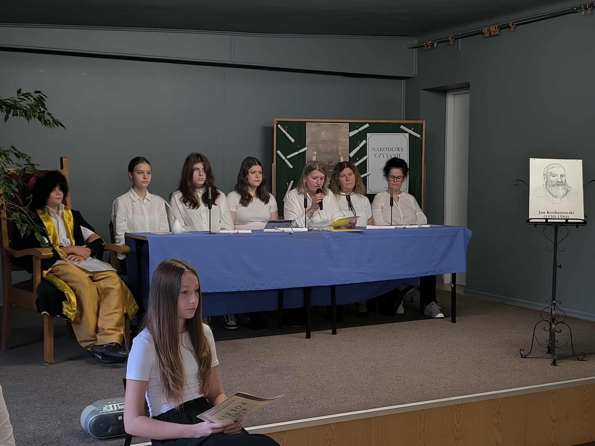 Po raz kolejny włączyliśmy się do akcji promującej znajomość literatury narodowej, zwanej Narodowym Czytaniem. W tym roku uczniowie z nauczycielami języka polskiego zaprezentowali swoim koleżankom i kolegom twórczość Jana Kochanowskiego. Uczniowie zapoznani zostali z informacjami na temat życia i twórczości tego polskiego poety epoki renesansu.