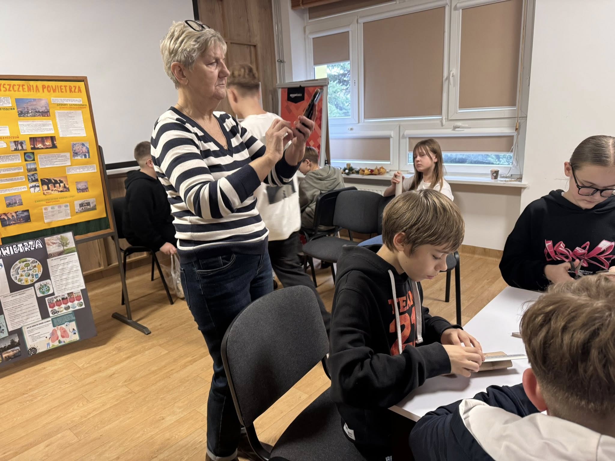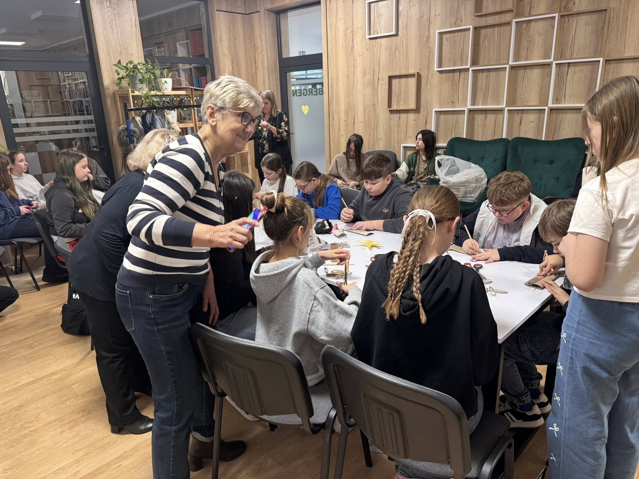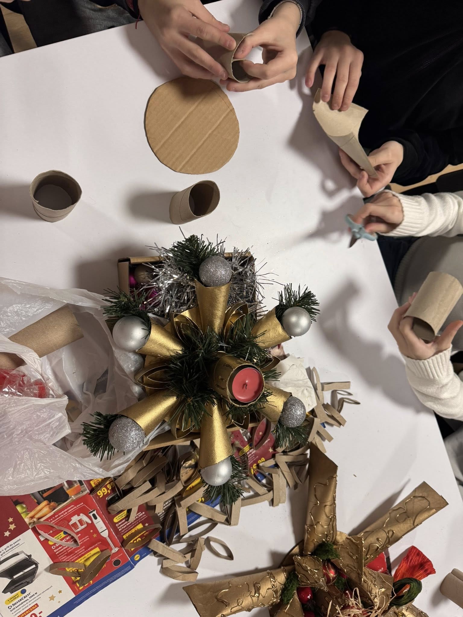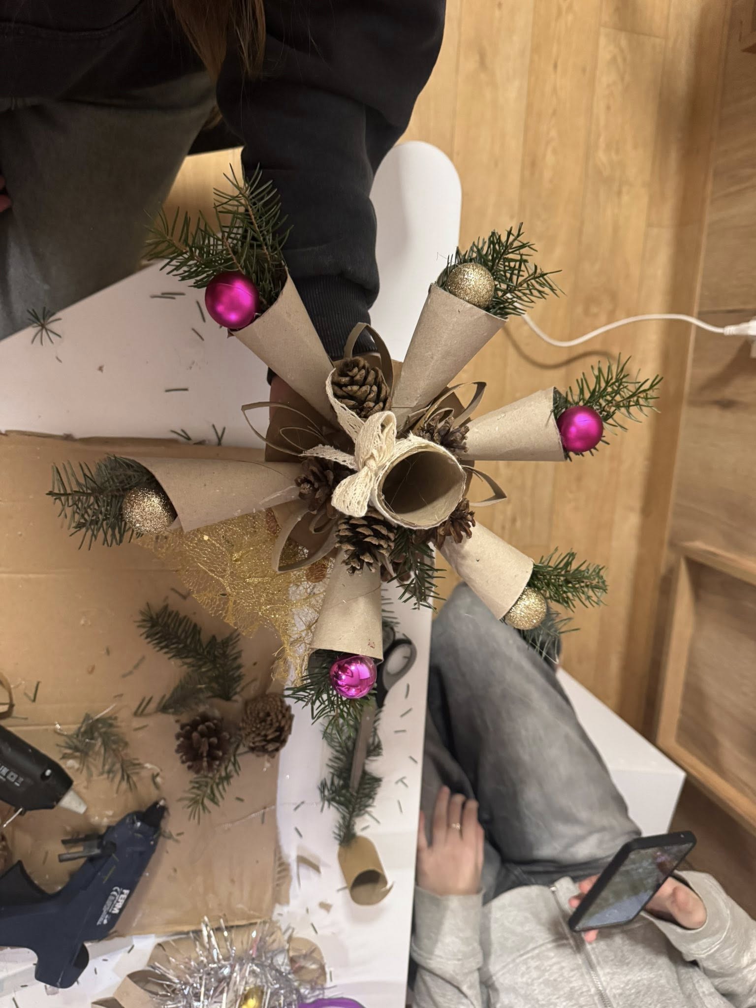 Wczoraj uczniowie klas: 6b i 7b, a dziś 5b i 1a tworzyli przepiękne stroiki i ozdoby świąteczne z surowców wtórnych. Wykorzystywali rolki po ręcznikach papierowych, papierze toaletowym, sznurki, papier i oczywiście różnego rodzaju ozdoby. Nie byłoby to możliwe, gdyby nie pomoc członkiń zaprzyjaźnionej sekcji „Niespokojne ręce” z Uniwersytetu Trzeciego Wieku ze Starachowic z panią Joanną Wójcik na czele. Panie przyjęły zaproszenie naszej wicedyrektor szkoły Agnieszki Pachockiej na wspólne warsztaty tworzenia ekoozdob świątecznych. Podczas tej niezwykłej lekcji ekologii, połączonej z tradycjami bożonarodzeniowymi panowała niezwykle miła i twórcza atmosfera. Uczniowie chętnie uczestniczyli w zajęciach, które tym razem nie były prowadzone przez nauczyciela naszej szkoły, ale przez niezwykle utalentowane słuchaczki UTW.
