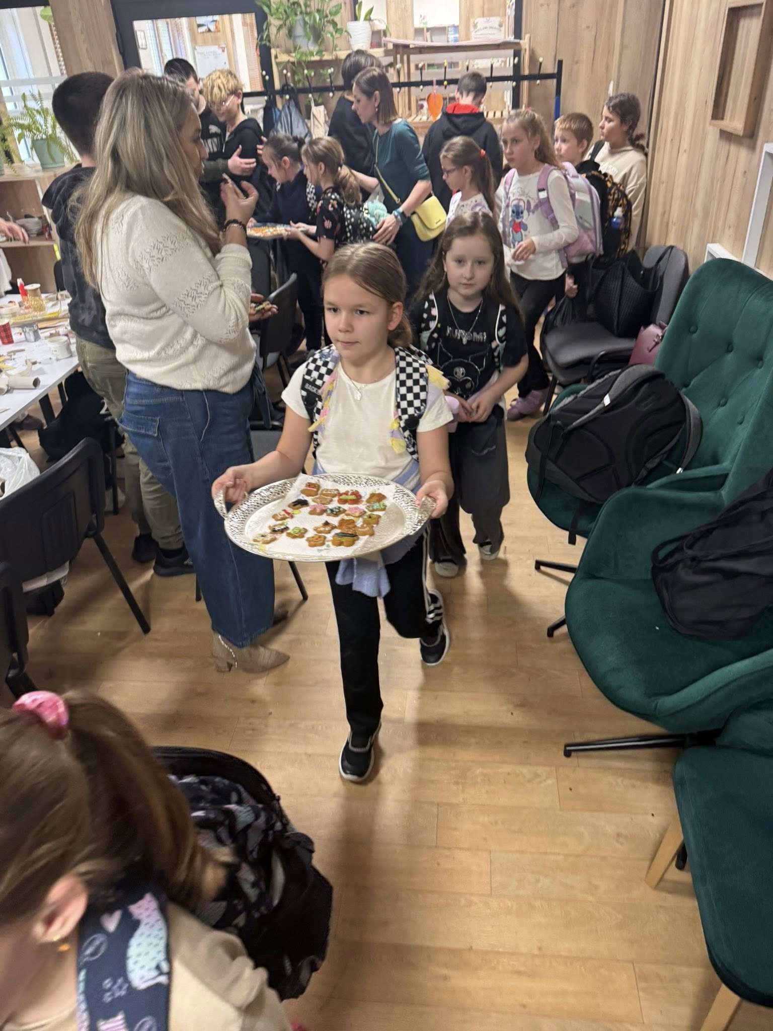 Wczoraj odwiedziły nas również uczennice klas trzecich z koła teatralnego wraz z opiekunką, panią Agnieszką Dygas, ze słodkim poczęstunkiem. Była to bardzo miła niespodzianka. Radość tworzenia ozdób świątecznych z tak sympatycznymi i pomocnymi Paniami, sprawiała, że magia stała się faktem. Co udało się „wyczarować”? Zobaczcie sami
