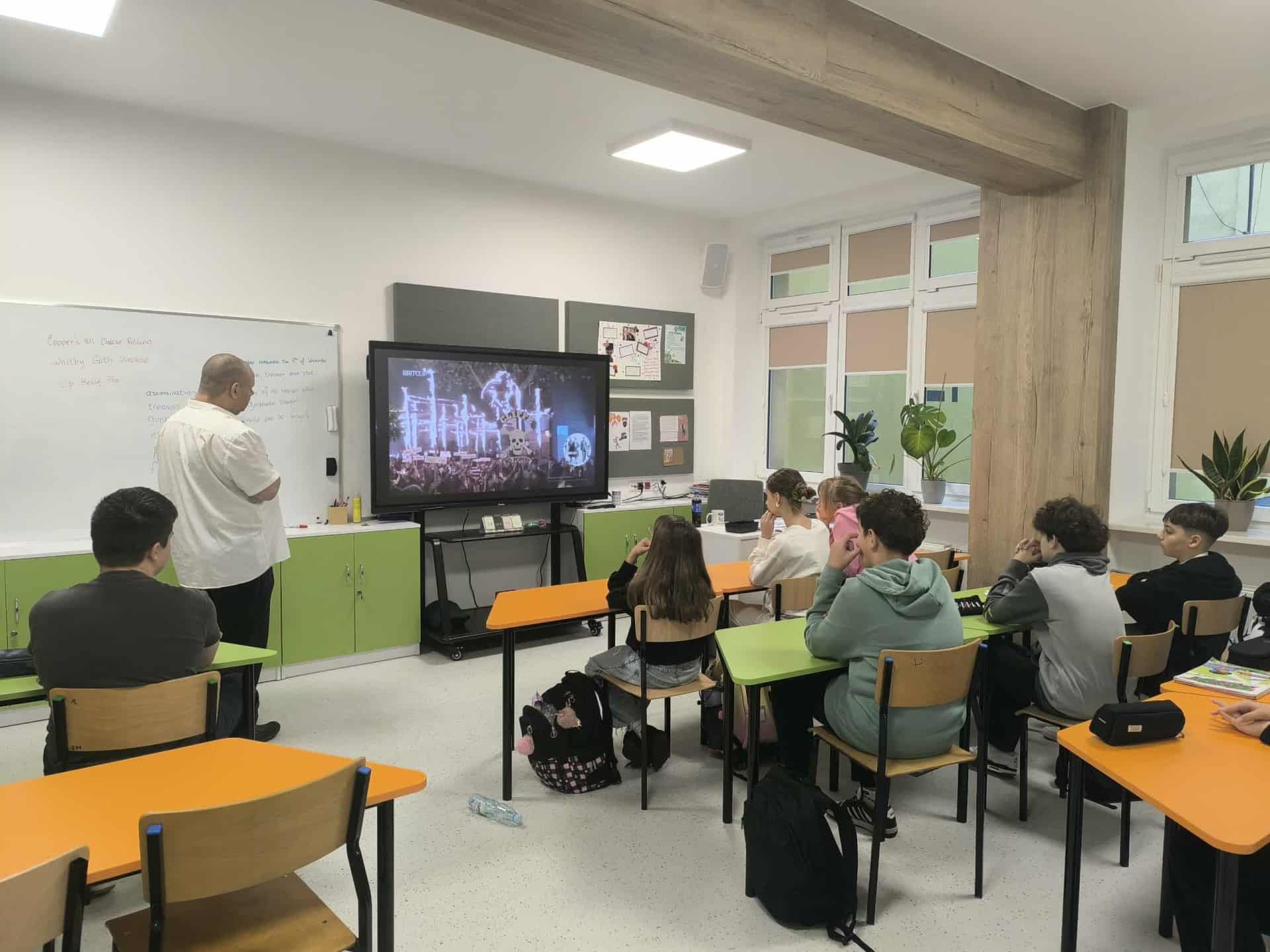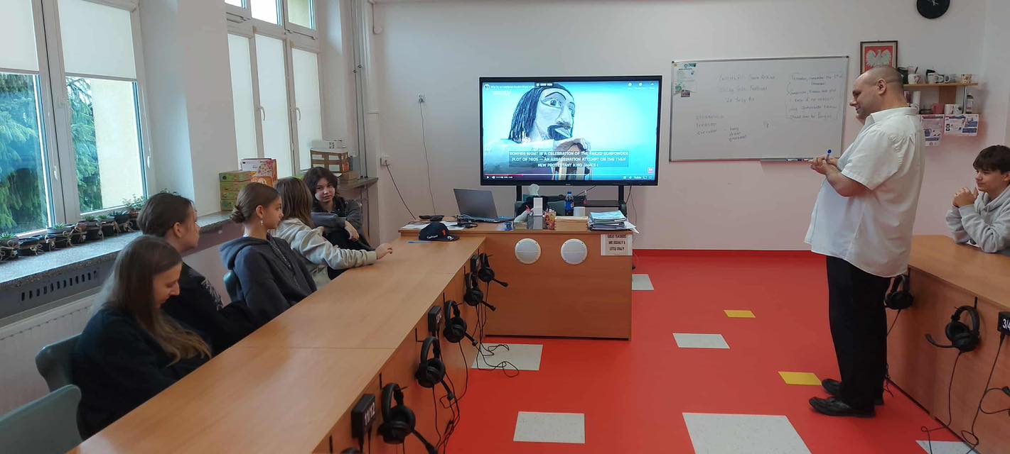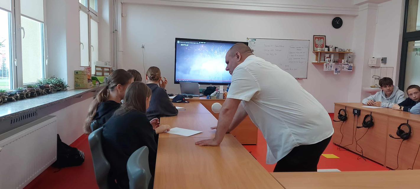 Dzisiejsze spotkanie naszych klas dwujęzycznych z native speakerem - Stuartem Mills dotyczyło festiwali i świąt. Uczniowie poznali brytyjską tradycję Bonfire Night, a także opowiadali o polskich zwyczajach, ich pochodzeniu i o tym, co lubią najbardziej – wolnym od szkoły.