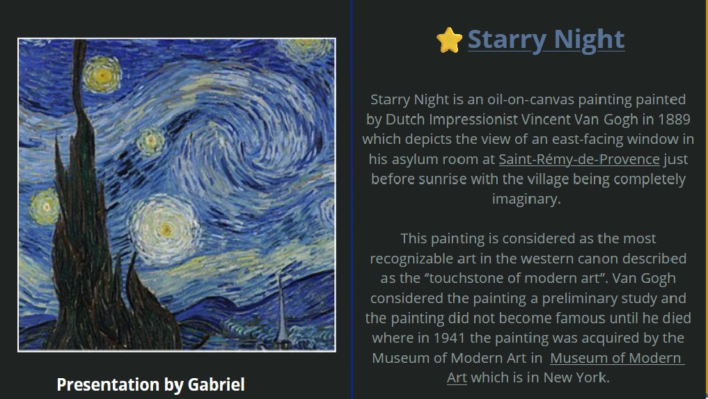 Uczniowie podczas ostatnich lekcji języka angielskiego poznawali słownictwo związane z kulturą i sztuką, a prezentacje o ulubionych dziełach były podsumowaniem ich pracy i pasji.