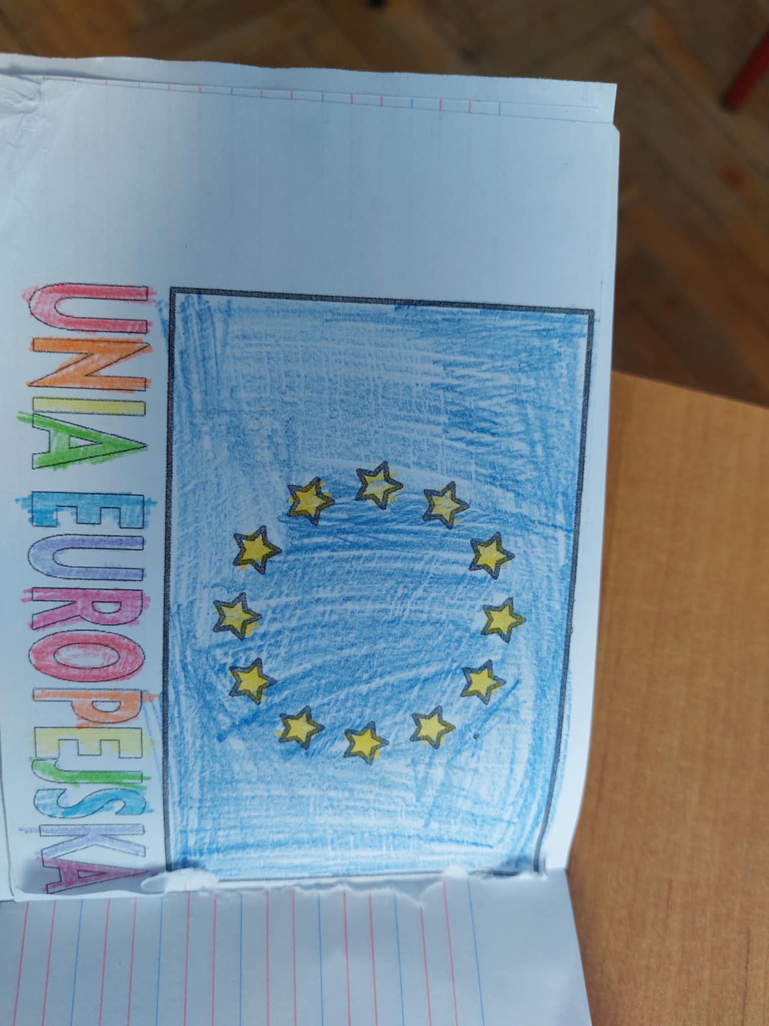Na mapie Europy i w diagramie szukaliśmy państw unijnych, a podsumowując nasz działania poznaliśmy symbole Unii- flagę i hymn.