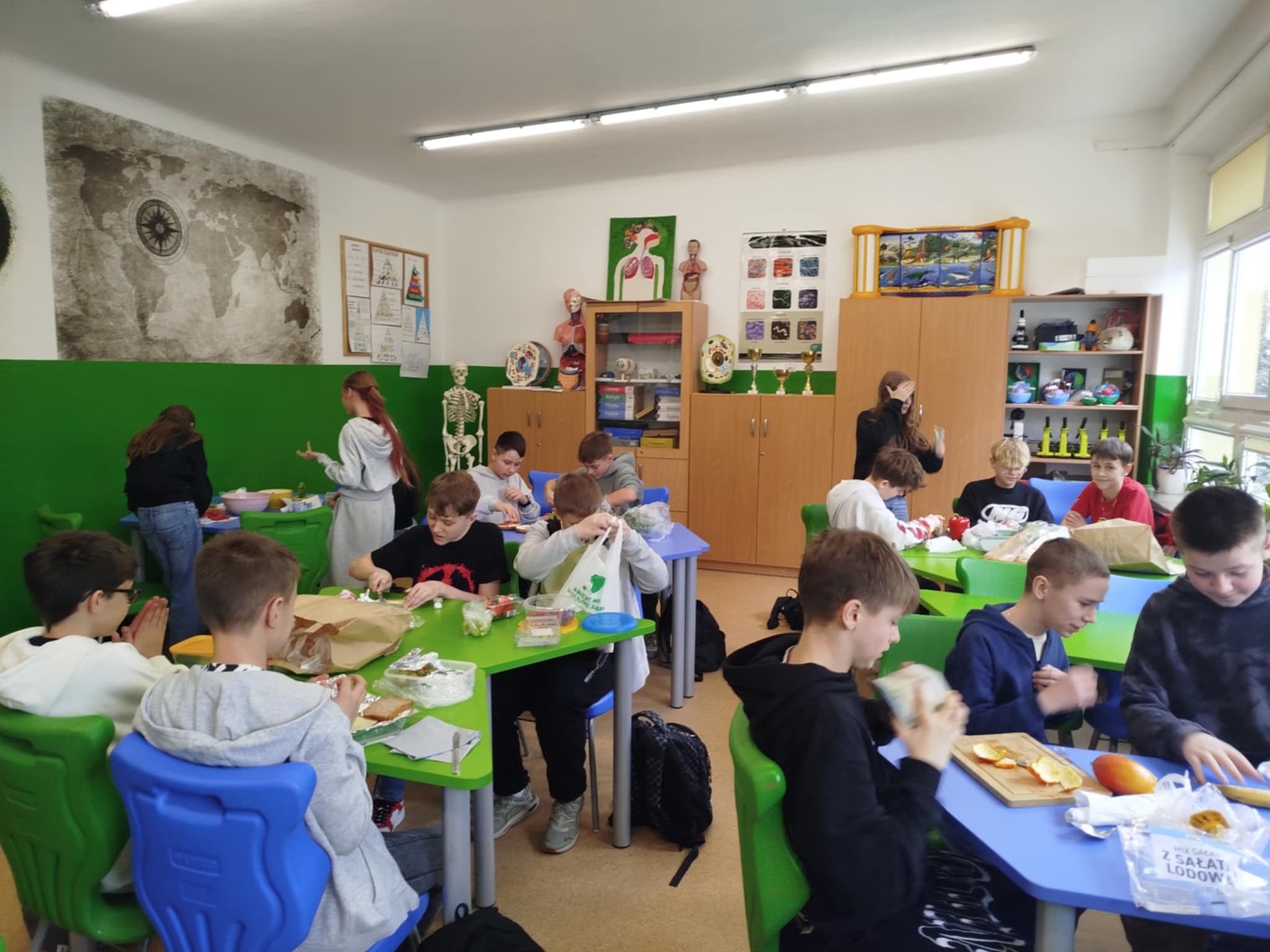 Podczas zajęć z biologii poświęconych zdrowemu żywieniu uczniowie klas 7a oraz 7b poznawali podstawowe zasady racjonalnej diety. W części praktycznej przygotowywali zdrowe przekąski i drugie śniadania, zdobyli wiedzę i umiejętności które mogą wykorzystać w codziennym życiu. Było zdrowo i pysznie